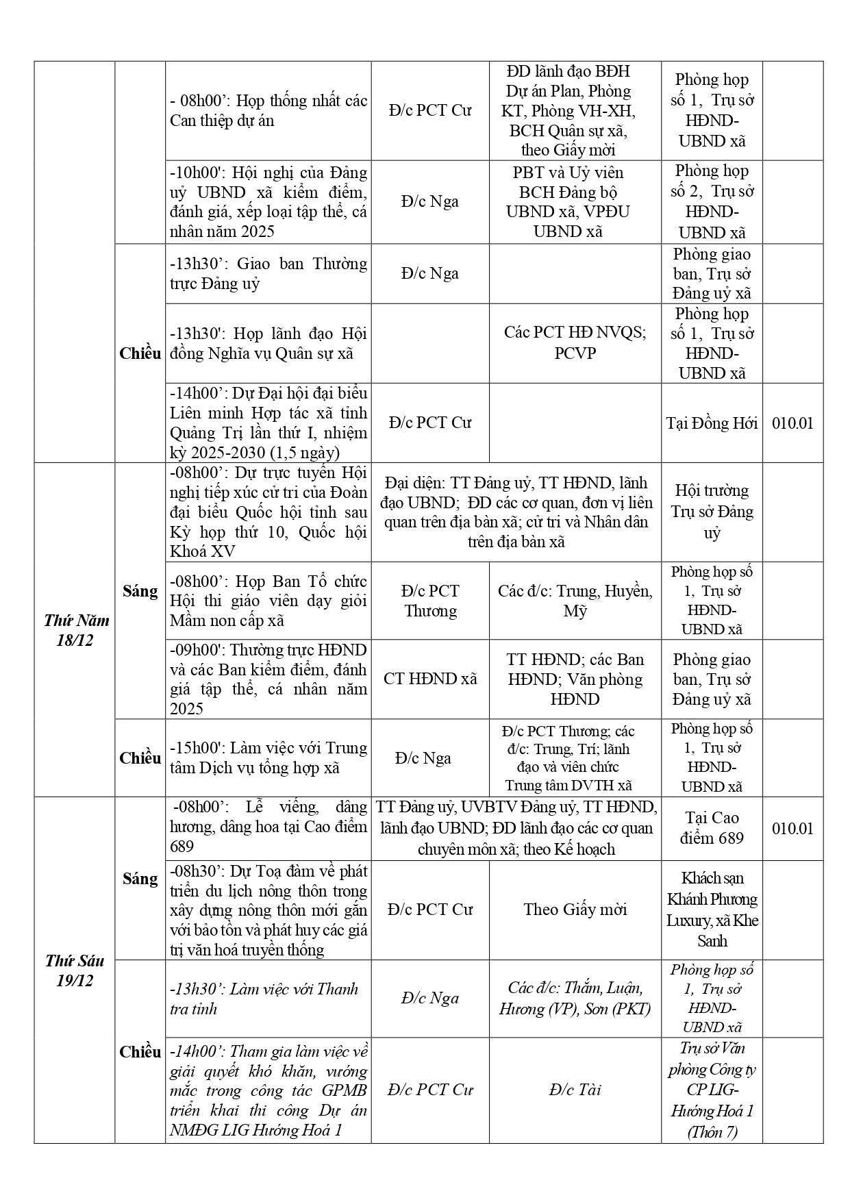 - LỊCH TUẦN 50 CỦA CƠ QUAN HĐND - UBND XÃ KHE SANH (12/12/2025)