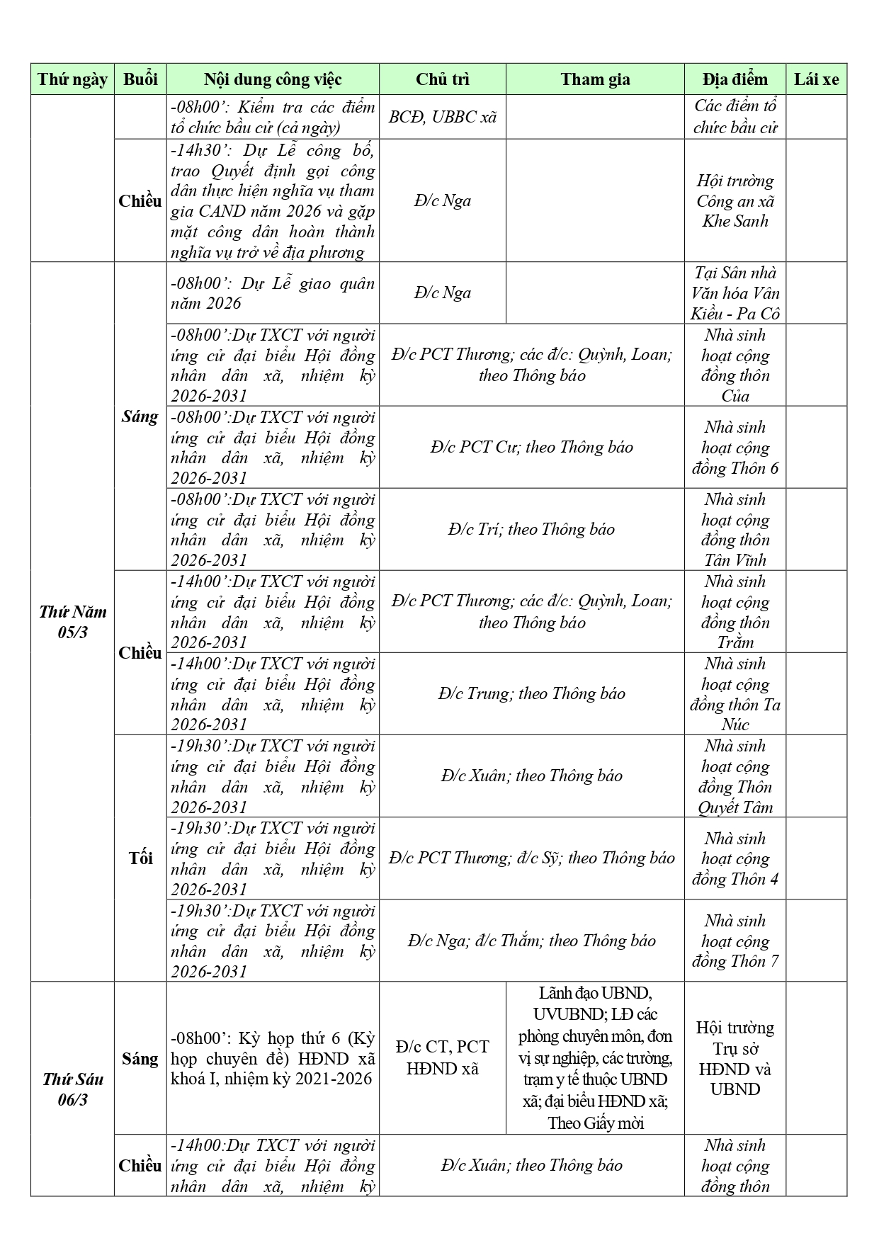 - LỊCH TUẦN 06 CỦA CƠ QUAN HĐND - UBND XÃ KHE SANH (03/02/2026)