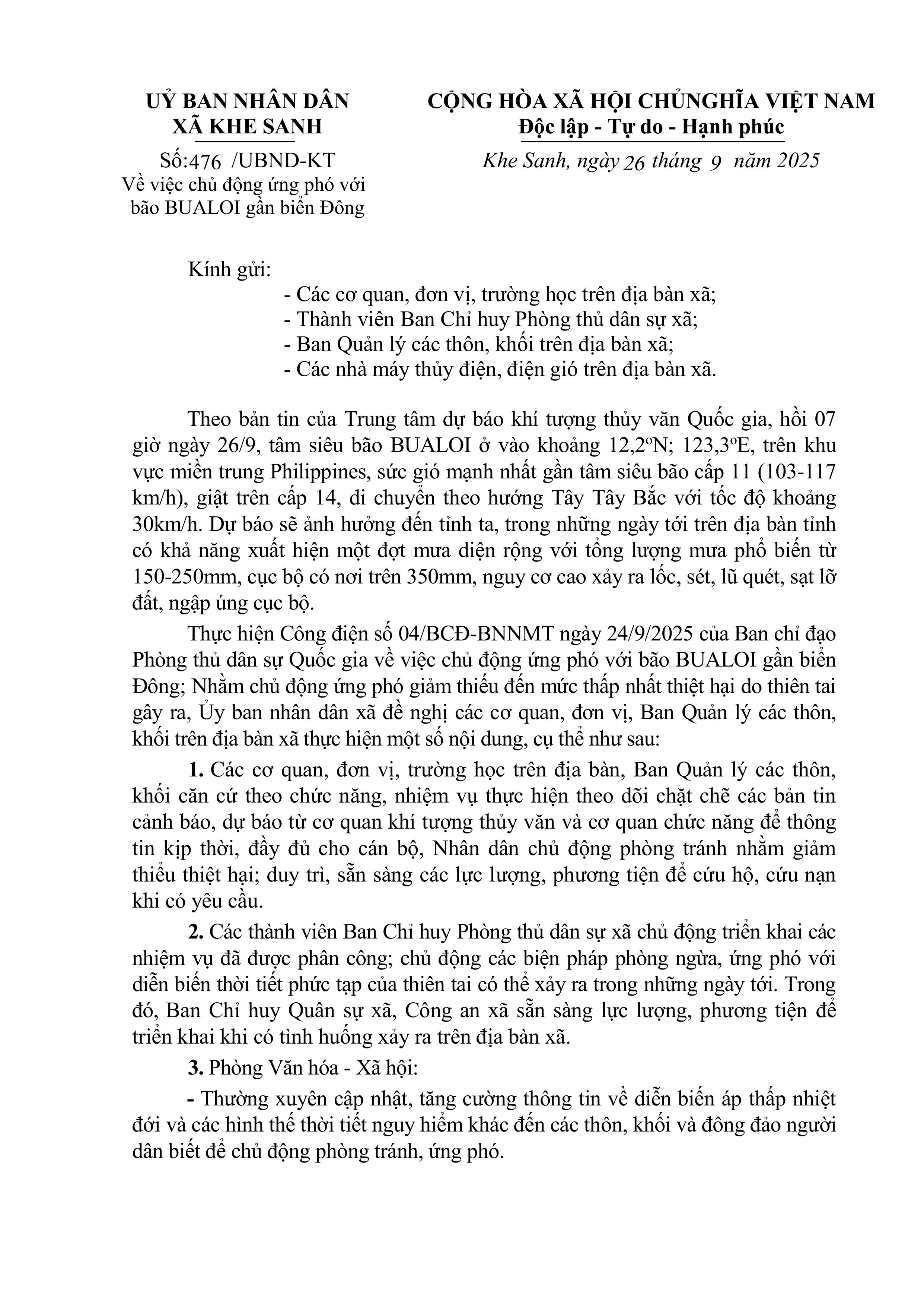 - Lãnh đạo xã Khe Sanh kiểm tra công tác ứng phó với bão số 10 (28/09/2025)