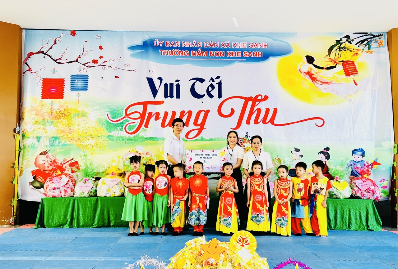 Trong không khí vui tươi, phấn khởi, các đồng chí lãnh đạo xã Khe Sanh đã gửi những lời chúc Tết Trung thu vui vẻ, đầm ấm tới các cháu thiếu nhi, đồng thời các đồng chí mong muốn nhà trường phối hợp phụ huynh tiếp tục quan tâm nhiều hơn nữa, để các cháu có sự phát triển toàn diện về thể chất, nhân cách, trí thức. Mong các cháu chăm ngoan, phấn đấu trở thành con ngoan, trò giỏi, cháu ngoan Bác Hồ. Những phần quà Trung thu ý nghĩa đã được trao tận tay các cháu, góp phần mang đến niềm vui, sự háo hức và không khí rộn ràng cho các em nhỏ trong ngày Tết của thiếu nhi.