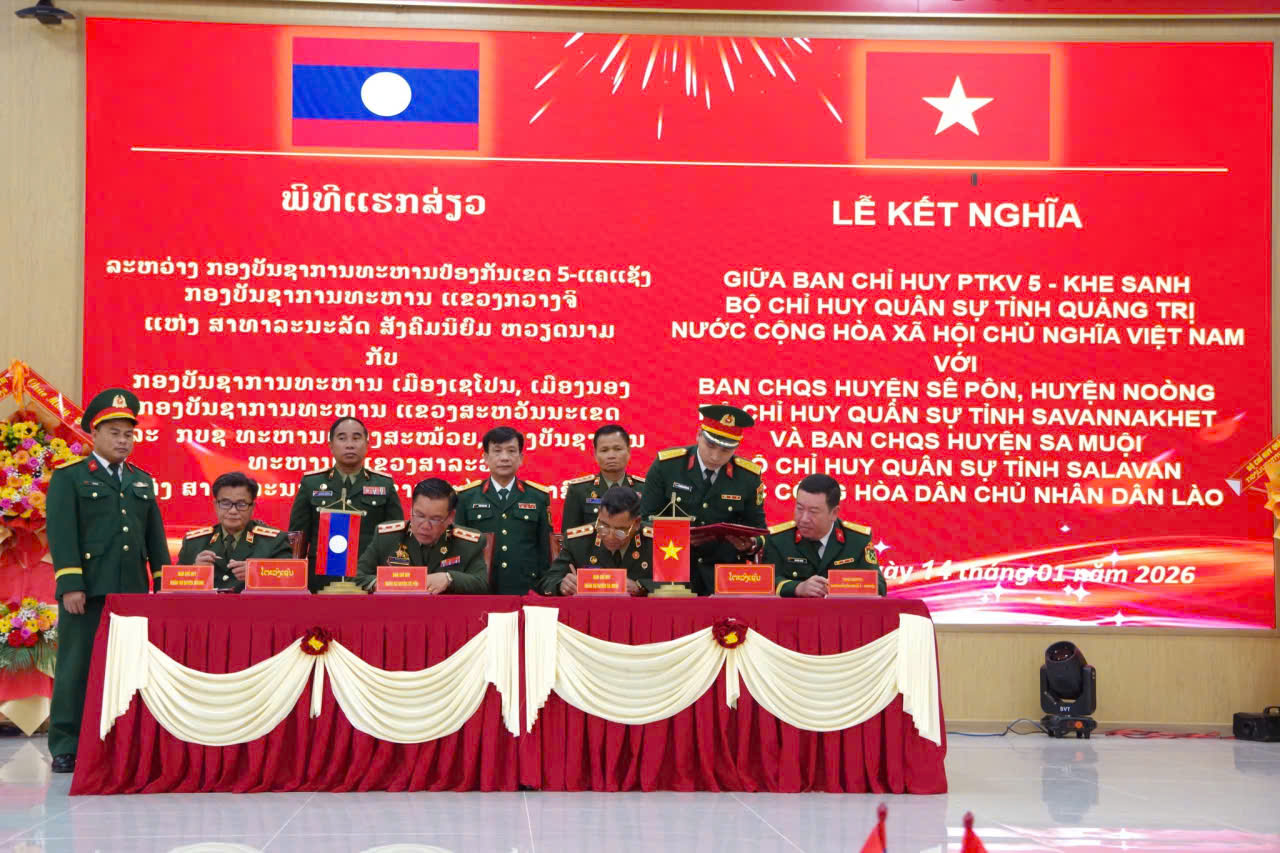 Ngày 14/1, tại xã Khe Sanh, Ban Chỉ huy Phòng thủ khu vực 5 (PTKV5)-Khe Sanh, Bộ CHQS tỉnh Quảng Trị phối hợp với Ban CHQS các huyện: Sê Pôn, Nòng, Bộ CHQS tỉnh Savannakhet và Ban CHQS huyện Sa Muội, Bộ CHQS tỉnh salavan (Lào) tổ chức lễ kết nghĩa và ký kết quy chế phối hợp hoạt động. Tham dự có Đại tá Thiều Đăng Anh, Phó Chỉ huy trưởng Bộ CHQS tỉnh Quảng Trị; Chỉ huy 08 Đồn Biên phòng, Ban Chỉ huy Bộ đội Biên phòng, Bộ CHQS tỉnh Quảng Trị; Chỉ huy Ban Chỉ huy PTKV5 – Khe Sanh. Về phía xã Khe Sanh có đồng chí Nguyễn Anh Cư, Phó Chủ tịch UBND xã.