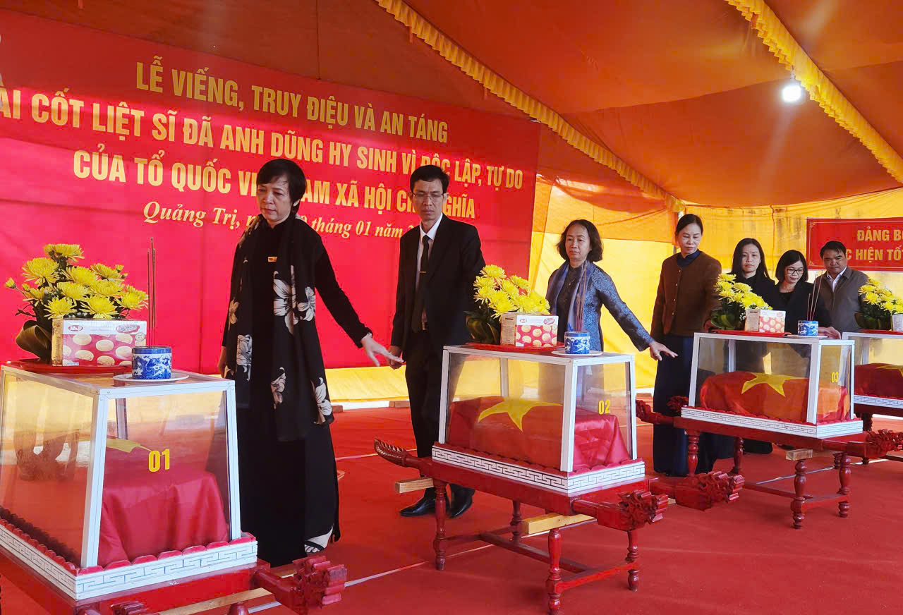 Sau lễ truy điệu, 5 hài cốt liệt sĩ được tổ chức an táng trang trọng tại Nghĩa trang liệt sĩ xã Khe Sanh, trong niềm xúc động và biết ơn vô hạn của đồng bào, chiến sĩ và chính quyền địa phương.