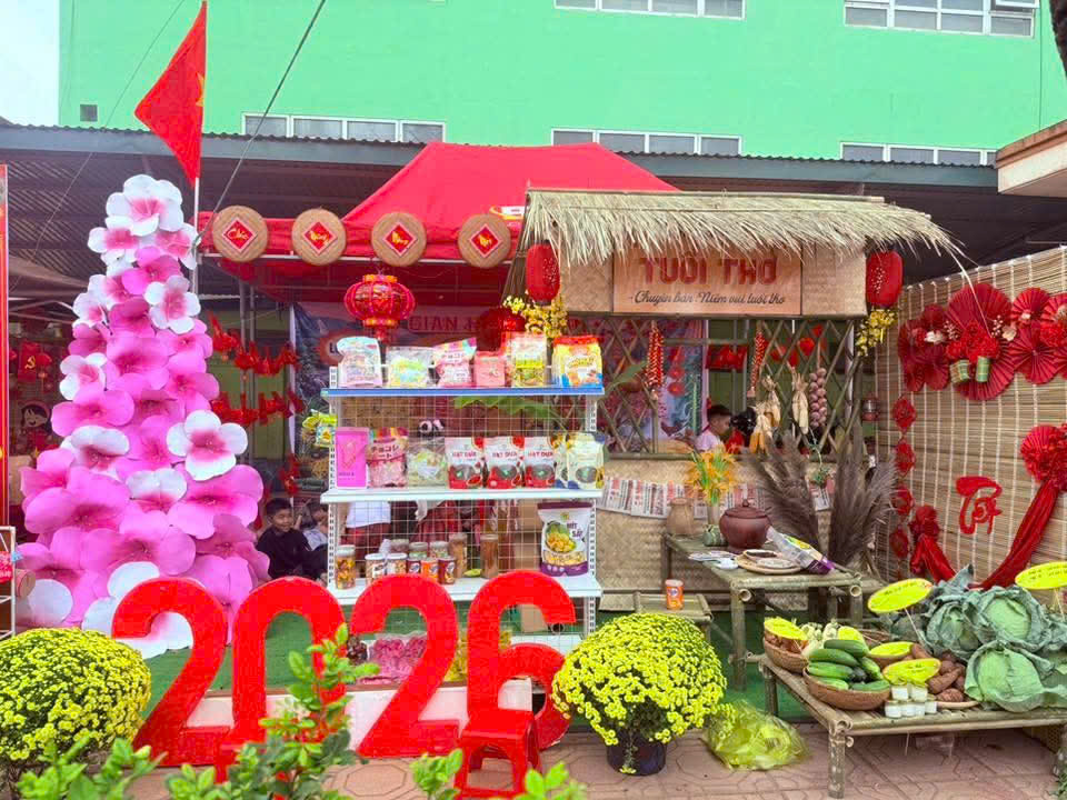 Ngoài ra, tại Ngày hội Xuân có có 15 gian hàng do các lớp trực tiếp chuẩn bị và tham gia phục vụ, với nhiều mặt hàng phong phú như ẩm thực ngày Tết, đồ dùng học tập, đồ lưu niệm, trò chơi dân gian… Các gian hàng được trang trí đẹp mắt, mang đậm sắc xuân, tạo nên không gian rộn ràng, ấm áp.