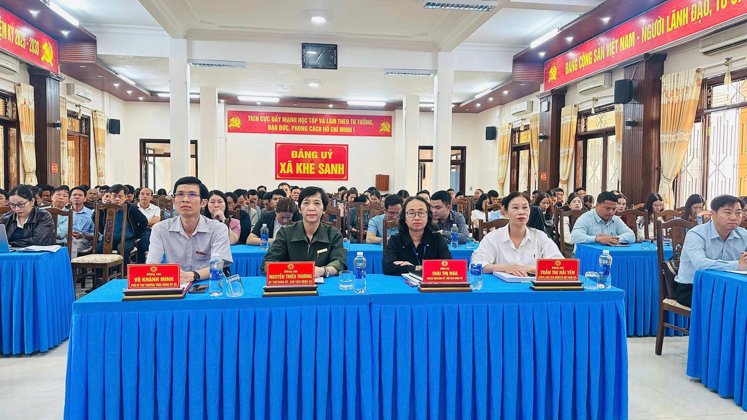 Sáng 25/02, Ban Bí thư Trung ương Đảng tổ chức hội nghị toàn quốc nghiên cứu, học tập, quán triệt và triển khai thực hiện Nghị quyết số 79-NQ/TW về phát triển kinh tế Nhà nước và Nghị quyết số 80-NQ/TW về phát triển văn hóa Việt Nam của Bộ Chính trị. Hội nghị được tổ chức theo hình thức trực tuyến từ Trung ương đến điểm cầu cấp tỉnh, cấp cơ sở. Tham dự hội nghị, tại điểm cầu xã Khe Sanh có đồng chí Nguyễn Triều Thương, Bí thư Đảng ủy, Chủ tịch HĐND xã; Đồng chí Võ Khánh Minh, Phó BTTT Đảng ủy xã; Đồng chí Thái Thị Nga, Phó Bí thư Đảng ủy, Chủ tịch UBND xã.