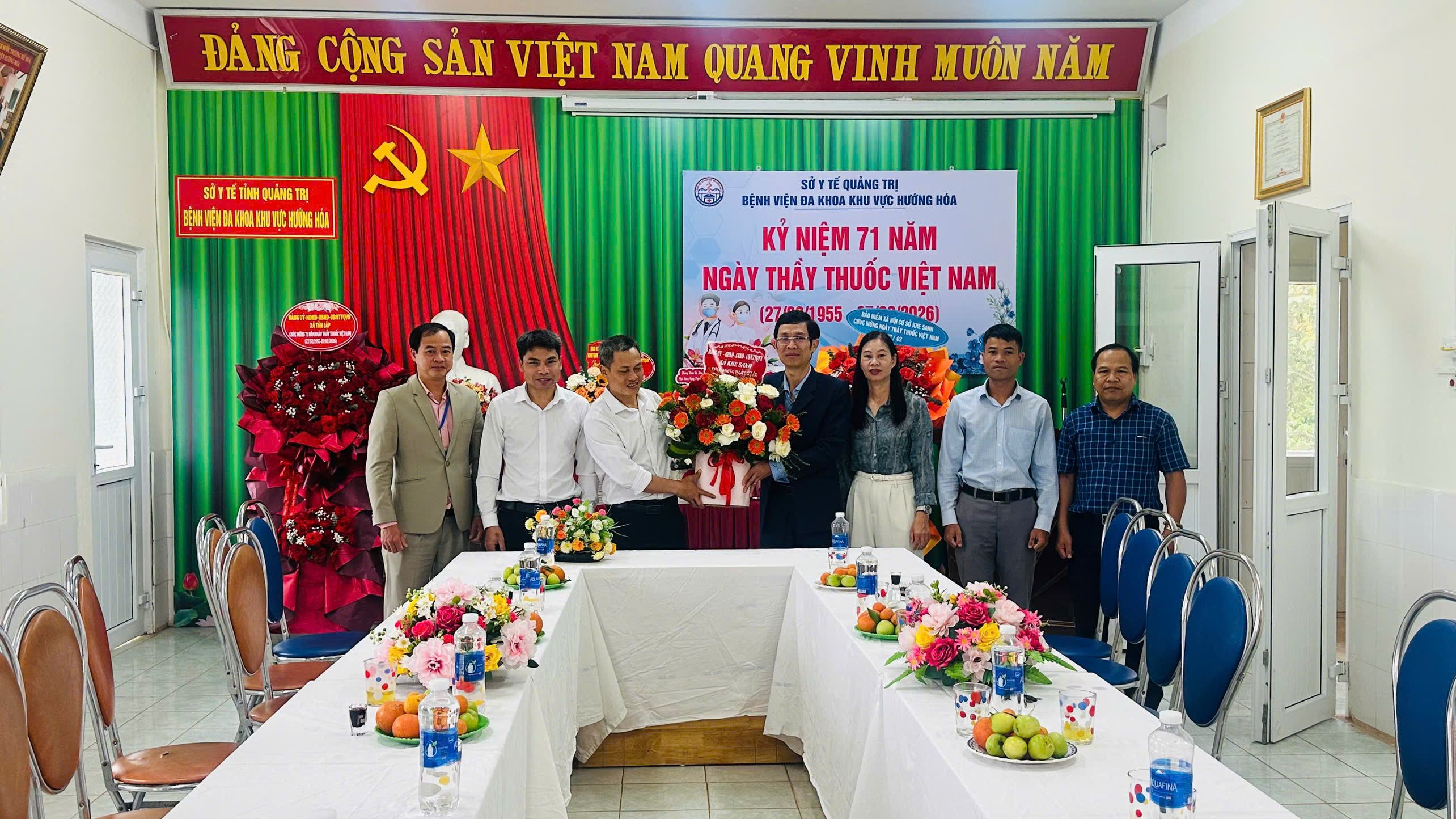 Thay mặt Đảng ủy, HĐND, UBND, Ủy ban MTTQ Việt Nam xã, các đồng chí lãnh đạo xã đã tặng hoa, gửi lời chúc mừng đến tập thể cán bộ, nhân viên y tế Trung tâm Y tế khu vực Hướng Hóa, Bệnh viện Đa khoa khu vực Hướng Hóa; Các Trạm Y tế: Hướng Tân, Tân Hợp, Khe Sanh, Húc.