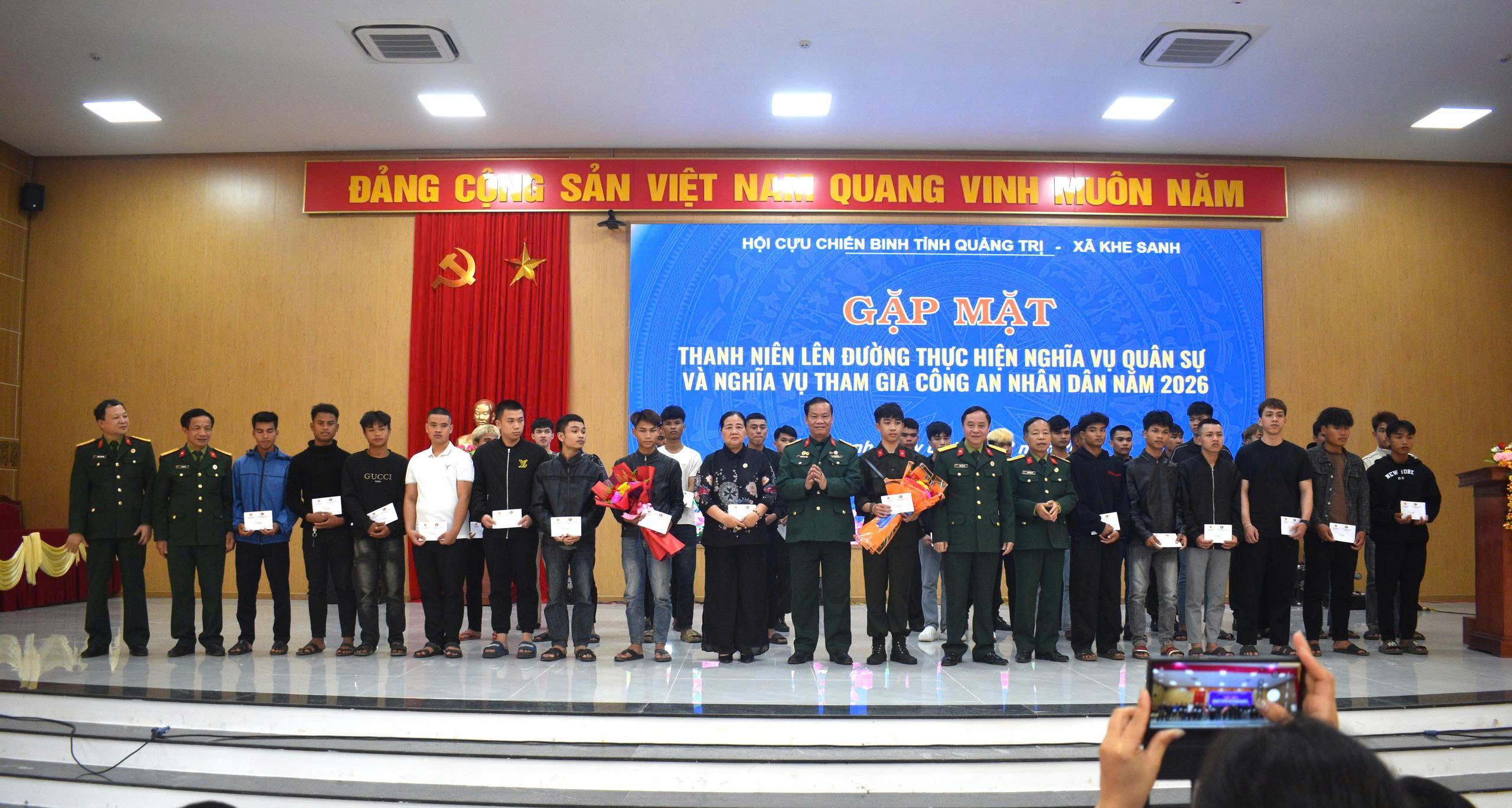 Ngày 02/03, Hội Cựu chiến binh tỉnh phối hợp với Hội Cựu chiến binh xã Khe Sanh tổ chức gặp mặt, tặng quà động viên thanh niên lên đường nhập ngũ năm 2026. Dự có đồng chí Trần Ngọc Sâm, Phó Chủ tịch UBMTTQ Việt Nam tỉnh, Chủ tịch Hội CCB tỉnh. Về phía xã Khe Sanh có đồng chí Nguyễn Triều Thương, Bí thư Đảng ủy, Chủ tịch HĐND xã.