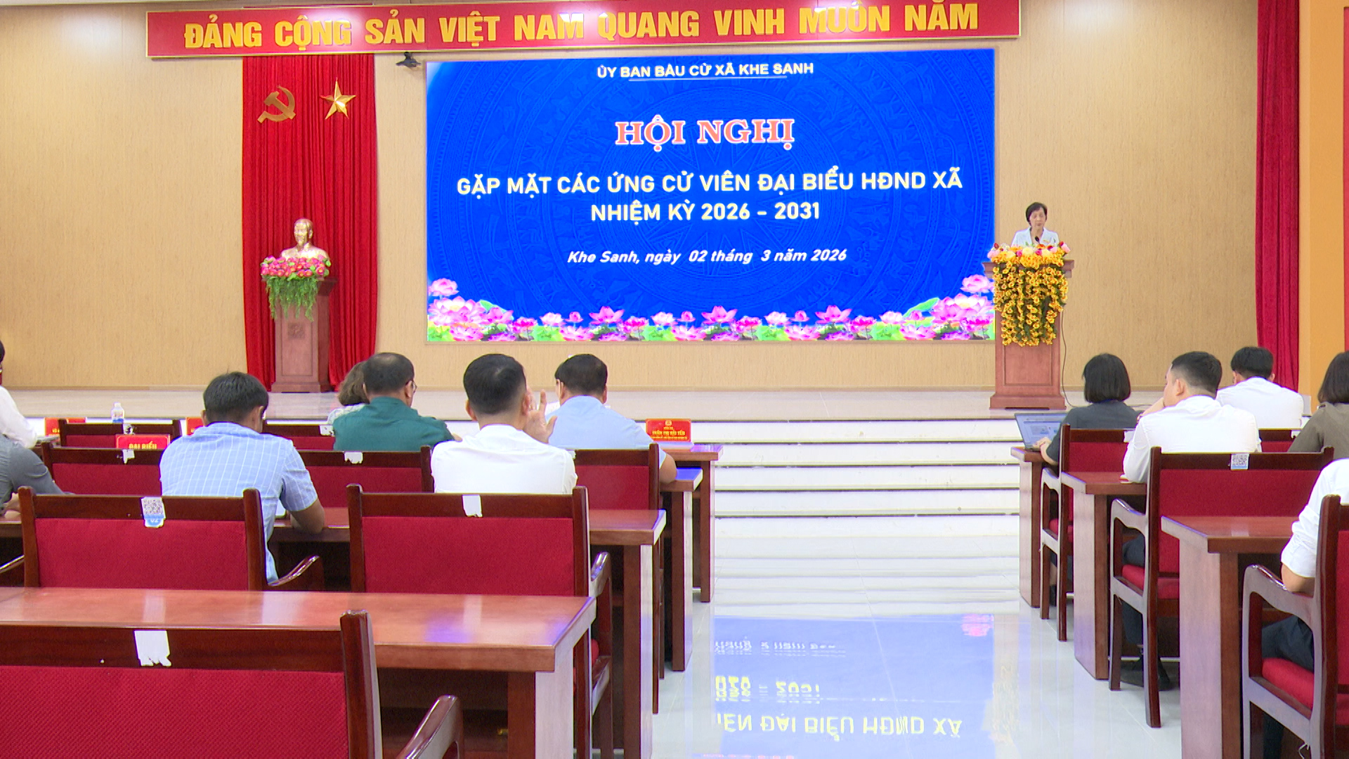 Ngày 02/03/2026, Ủy ban bầu cử (UBBC) xã Khe Sanh tổ chức Hội nghị gặp mặt các ứng cử đại biểu HĐND xã nhiệm kỳ 2026 – 2031. Dự hội nghị có các đồng chí: Nguyễn Triều Thương, Bí thư Đảng ủy, Chủ tịch HĐND xã; Võ Khánh Minh, Phó Bí thư Thường trực Đảng ủy xã; Thái Thị Nga, Phó Bí thư Đảng ủy, Chủ tịch UBND xã cùng các đồng chí trong BTV Đảng ủy, Thường trực HĐND, UBND, UBMTTQ Việt Nam xã; Các ứng cử viên đại biểu HĐND xã Khe Sanh, nhiệm kỳ 2026 - 2031.
