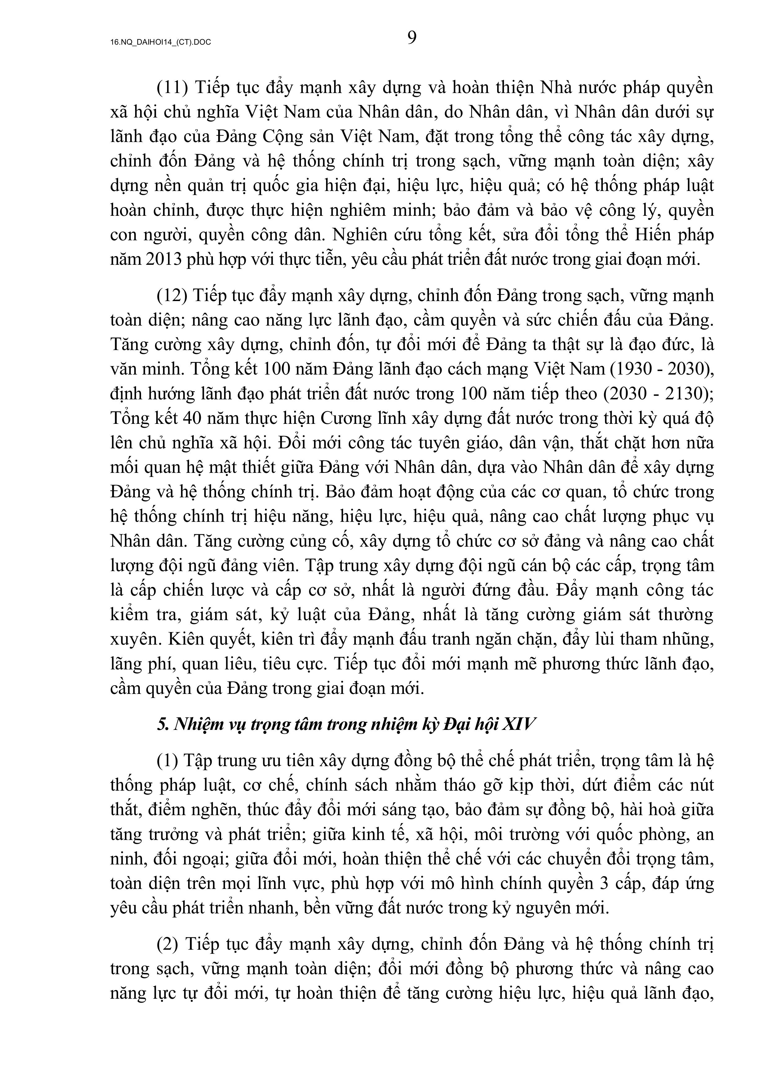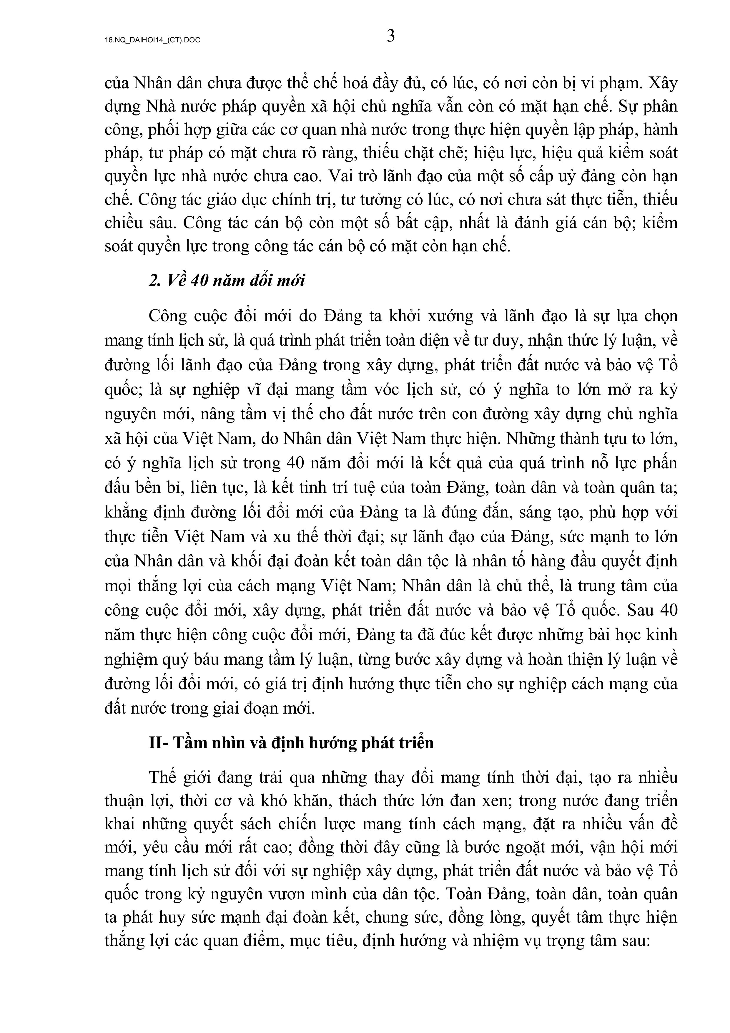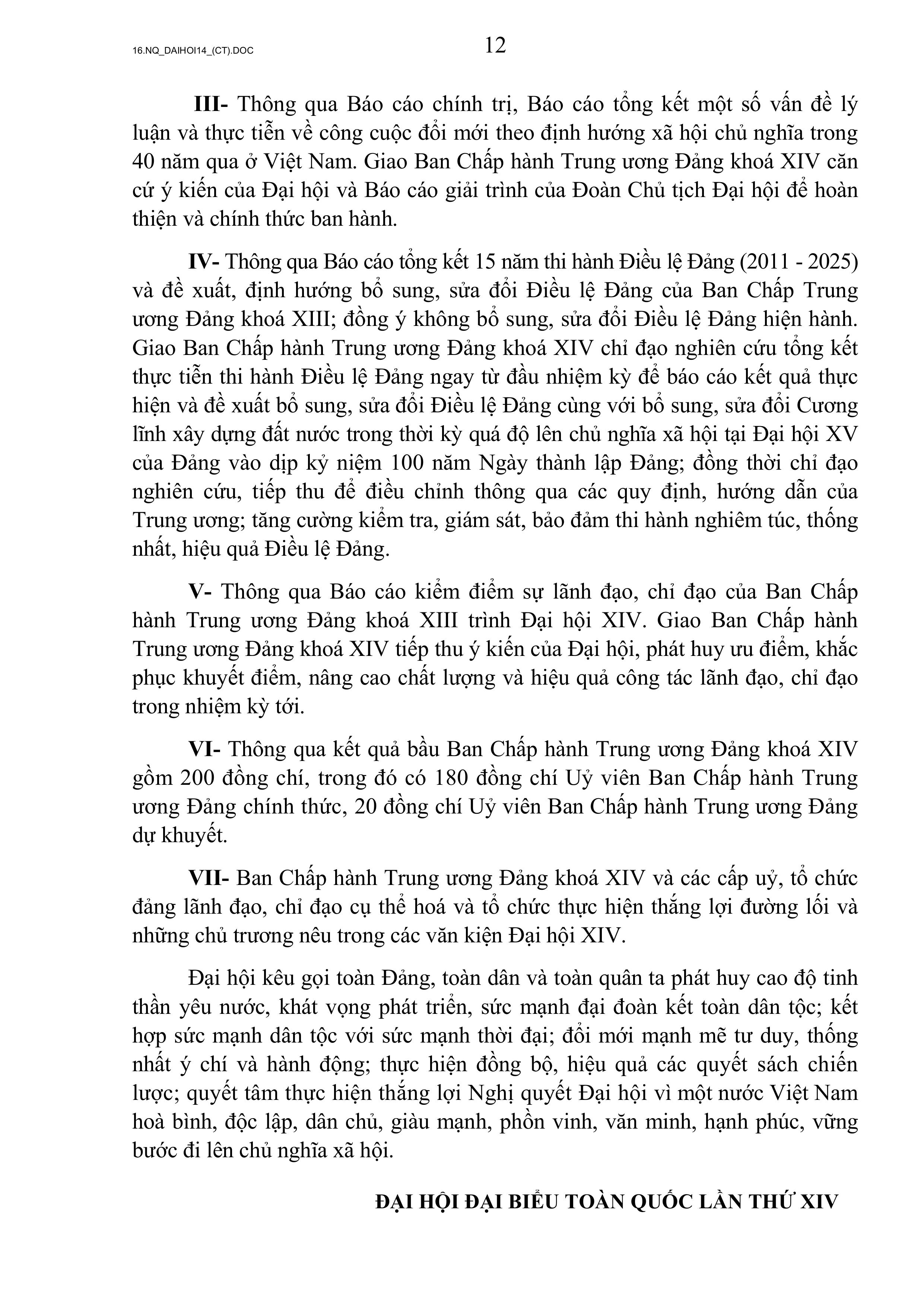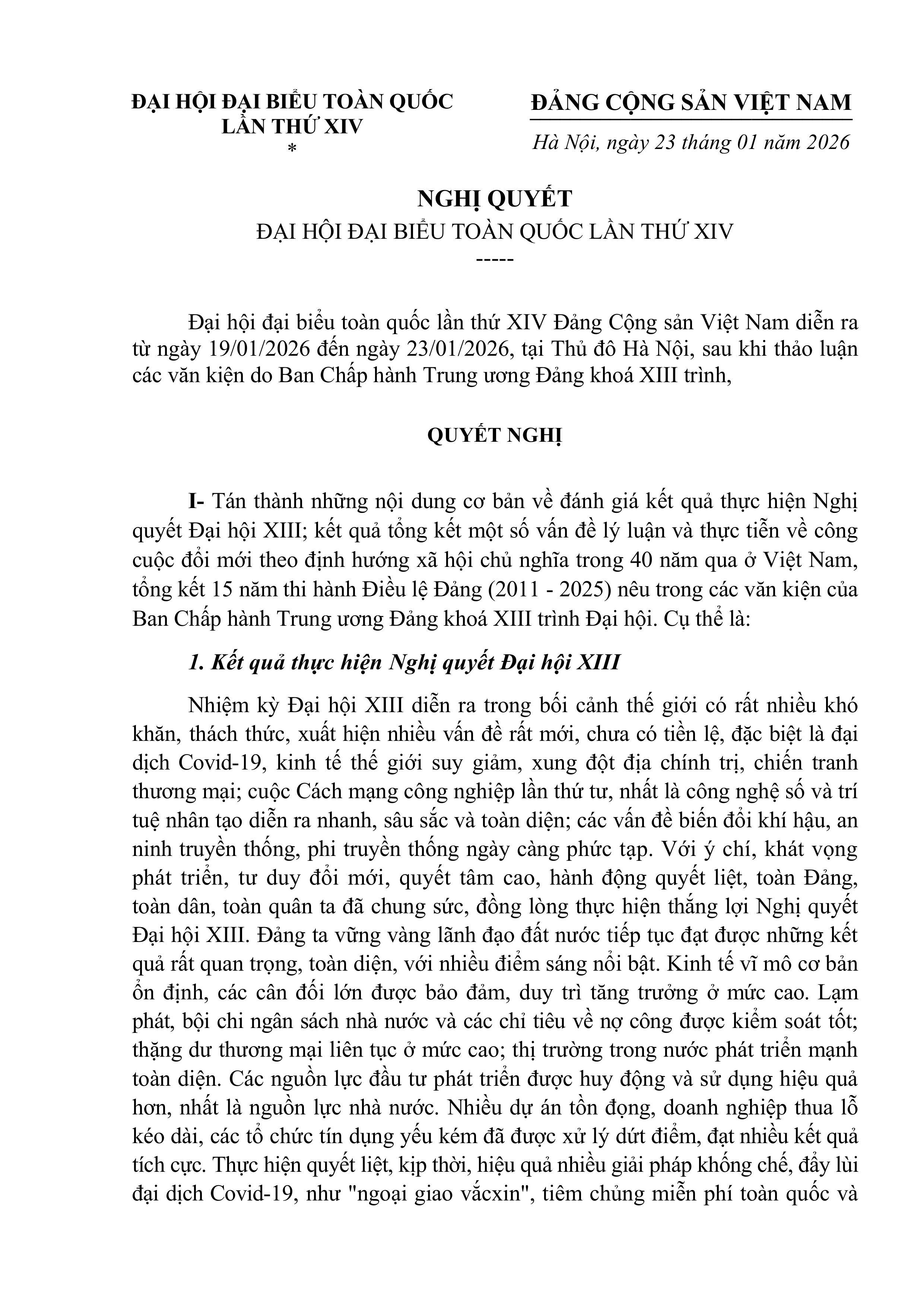 NGHỊ QUYẾT ĐẠI HỘI ĐẠI BIỂU TOÀN QUỐC LẦN THỨ XIV