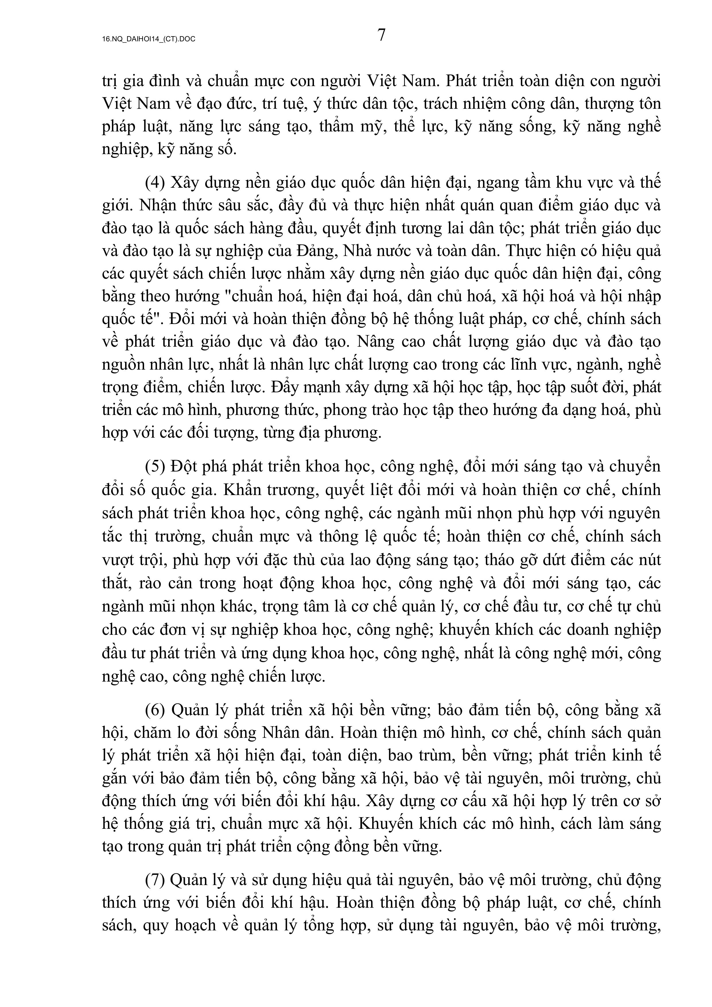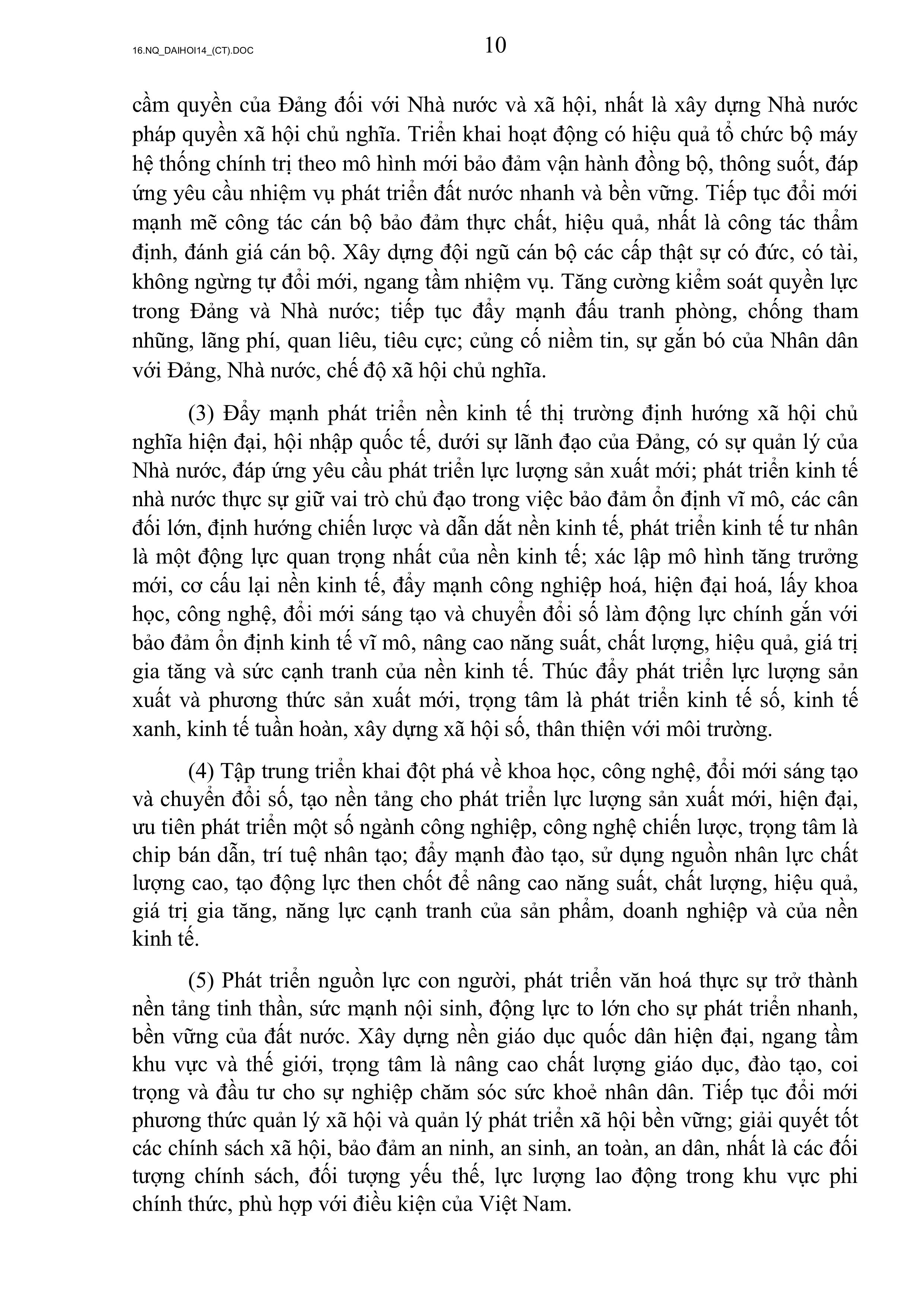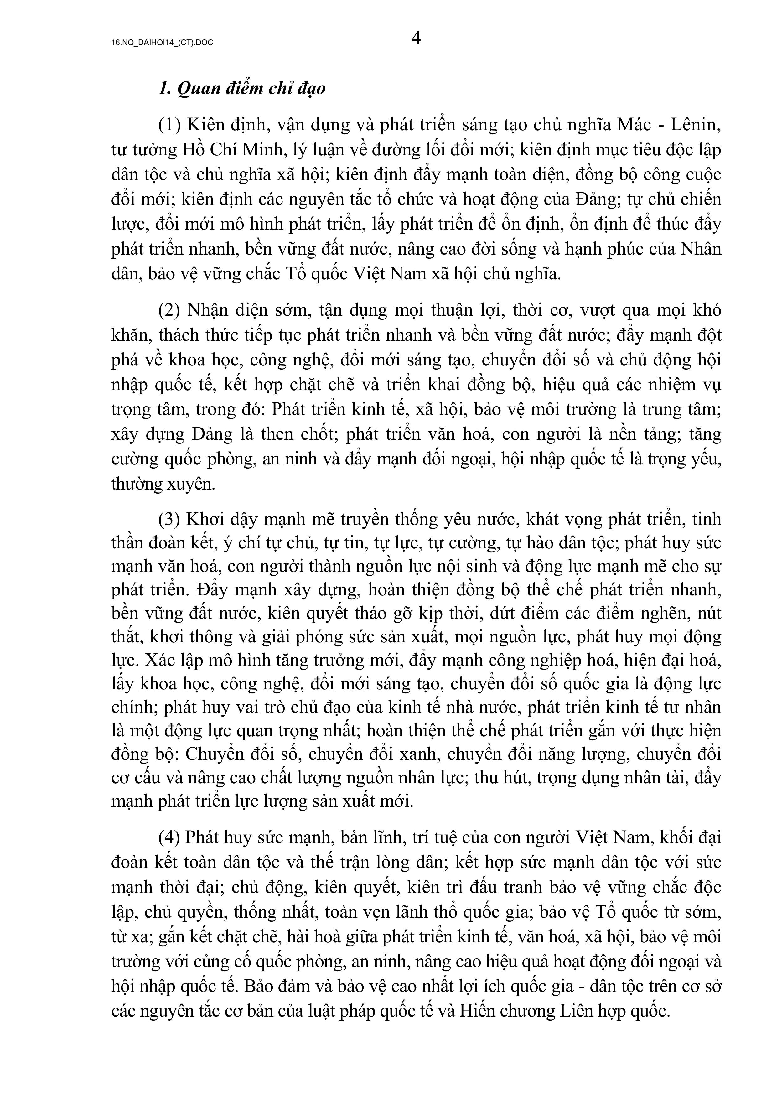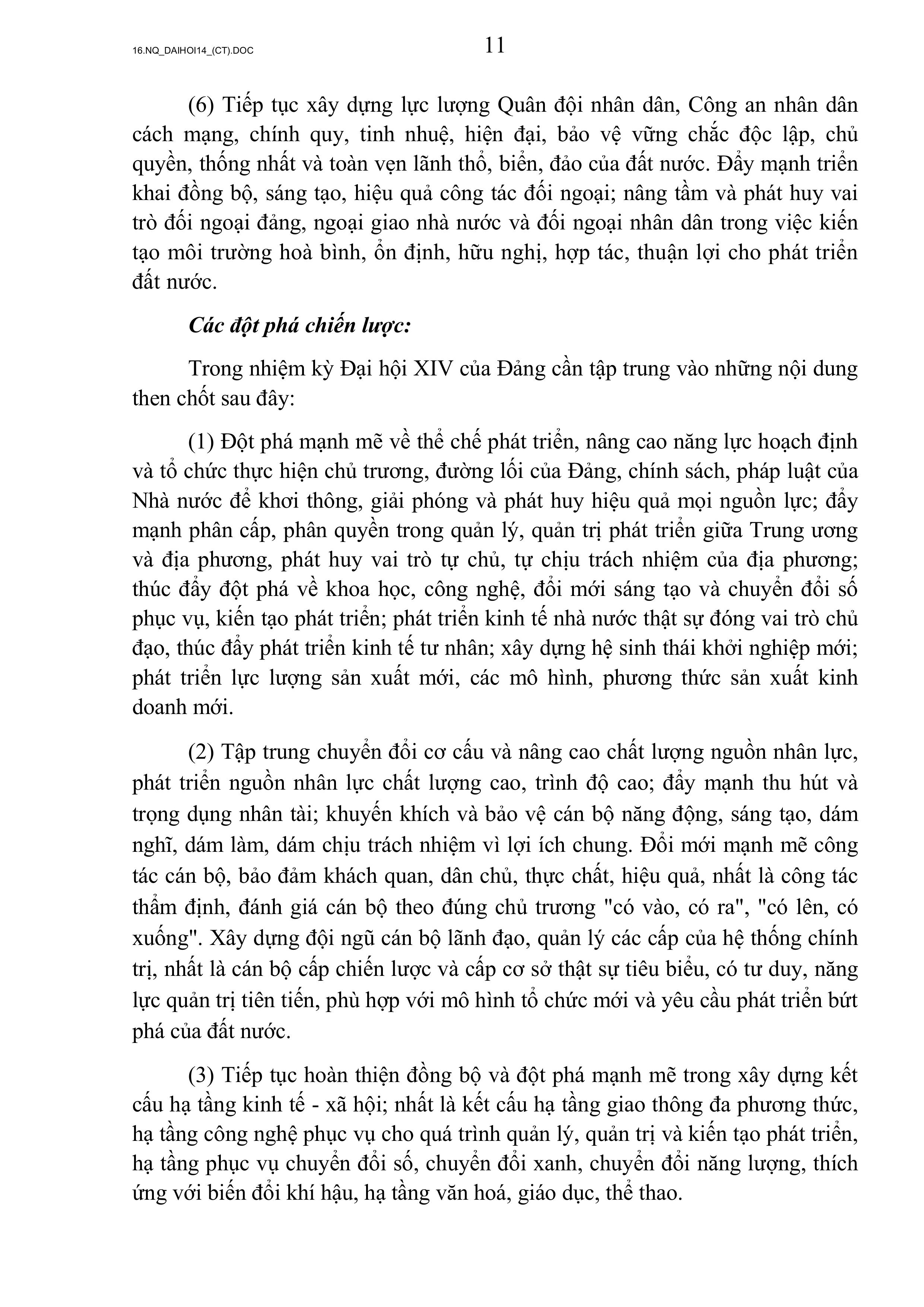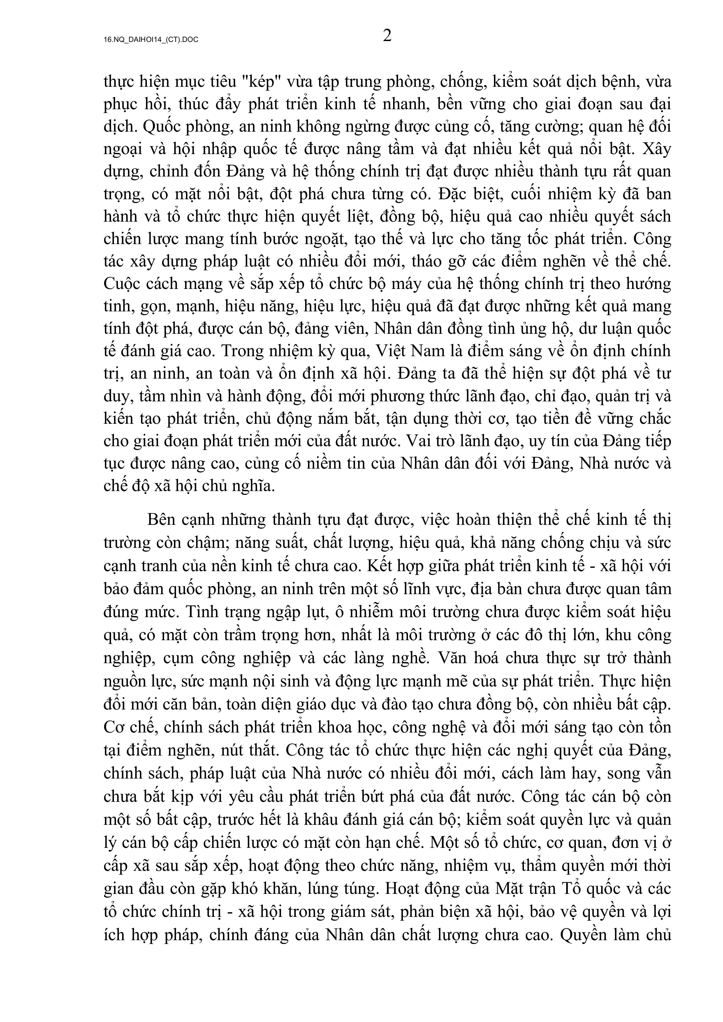 NGHỊ QUYẾT ĐẠI HỘI ĐẠI BIỂU TOÀN QUỐC LẦN THỨ XIV
