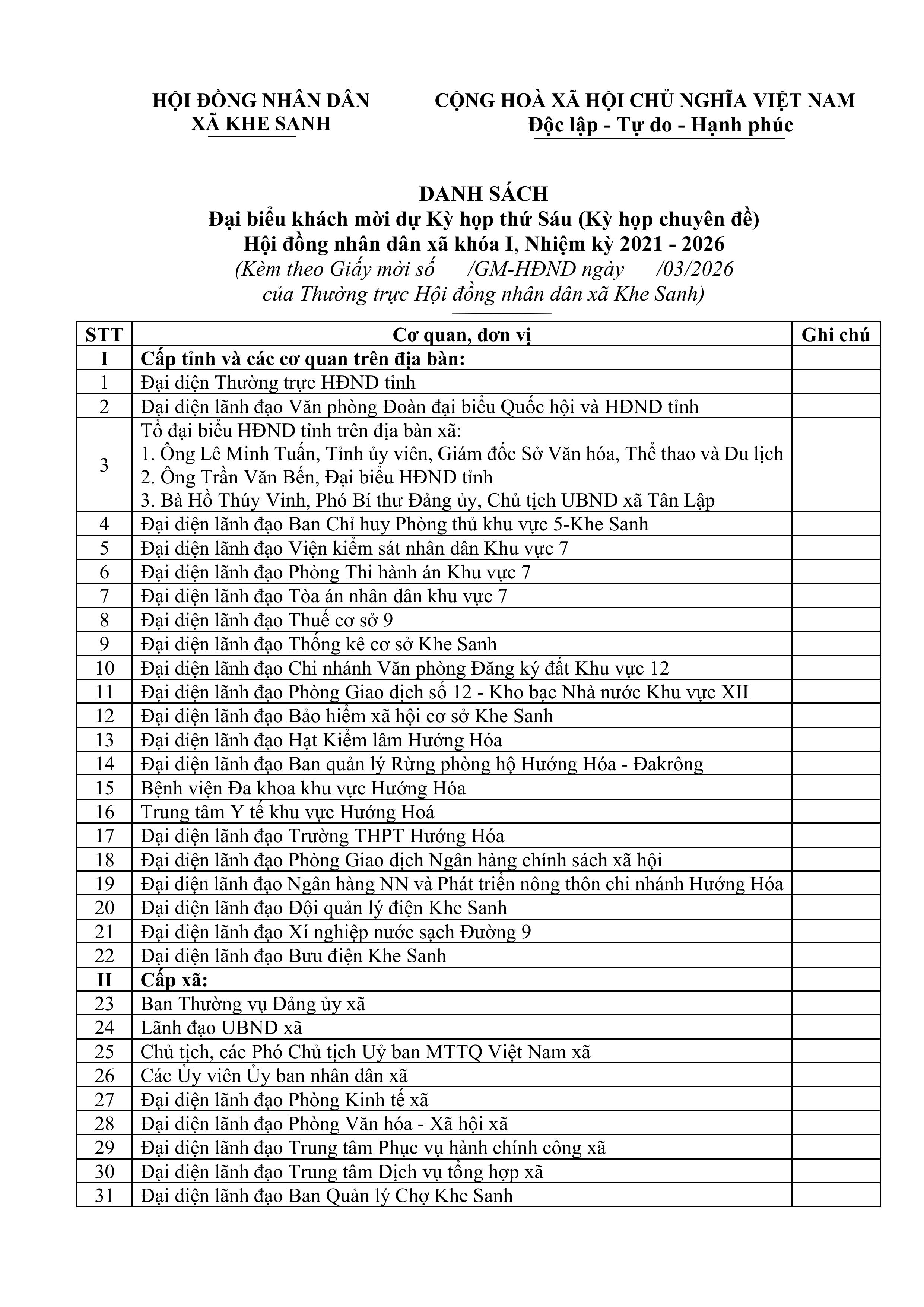 - XÃ KHE SANH CÔNG BỐ DANH SÁCH CHÍNH THỨC NHỮNG NGƯỜI ỨNG CỬ ĐẠI BIỂU HĐND XÃ KHÓA II, NHIỆM KỲ 2026 – 2031 (27/02/2026)
