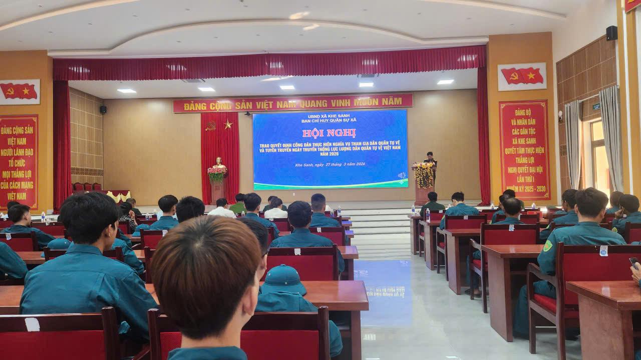 Ngày 27/3 Ban CHQS xã Khe Sanh tổ chức Lễ kỷ niệm 91 năm Ngày truyền thống lực lượng Dân quân tự vệ Việt Nam (28/3/1935 – 28/3/2026), trao quyết định gọi công dân thực hiện nghĩa vụ tham gia Dân quân năm 2026. Tham dự có đồng chí Thái Thị Nga, Phó Bí thư Đảng ủy xã, Chủ tịch UBND xã.