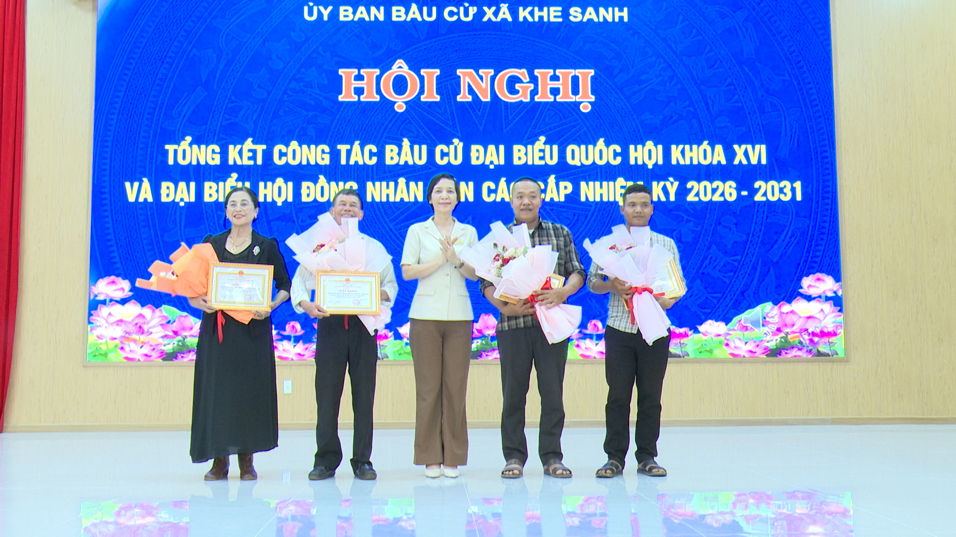 Nhân dịp này, Chủ tịch UBND xã tặng Giấy khen cho 4 tập thể, 25 cá nhân có thành tích tiêu biểu trong công tác bầu cử đại biểu Quốc hội khóa XVI và đại biểu HĐND các cấp nhiệm kỳ 2026 - 2031.