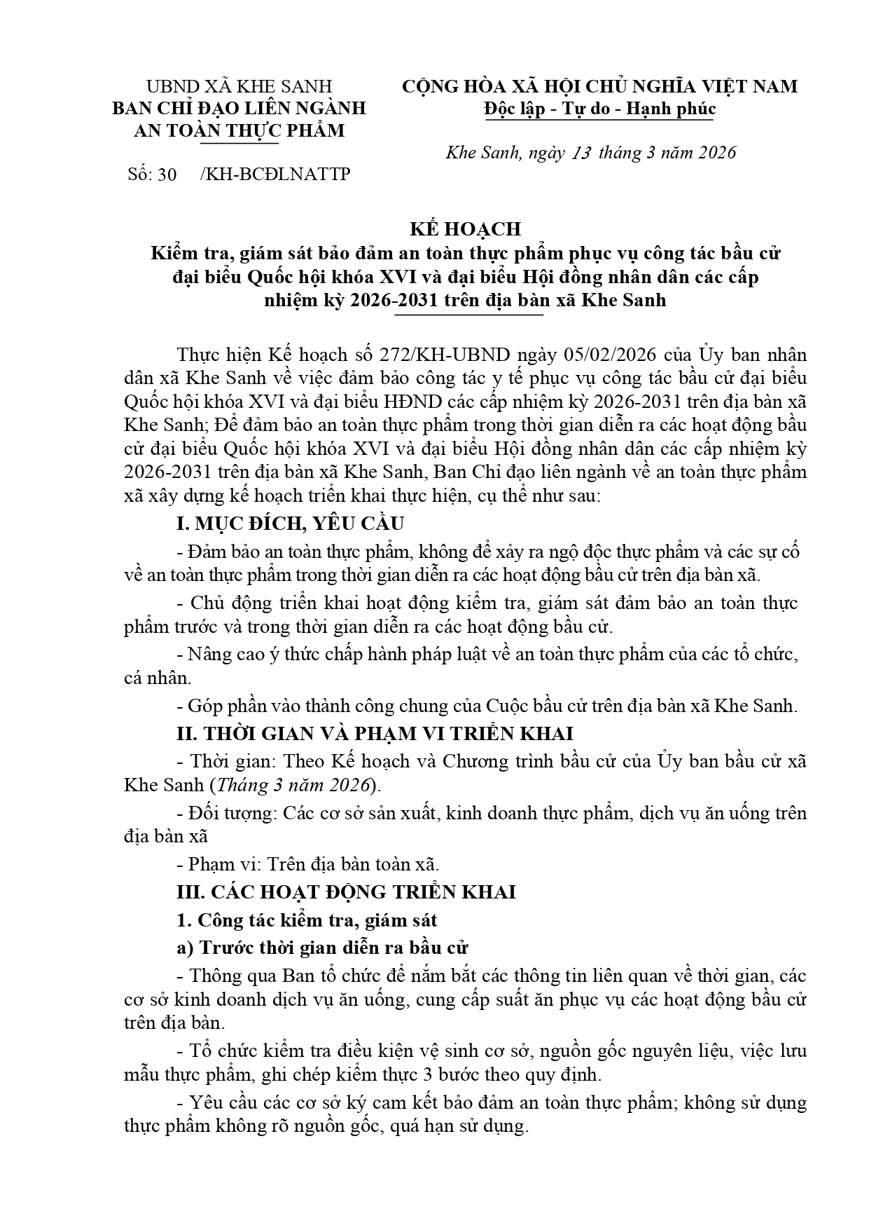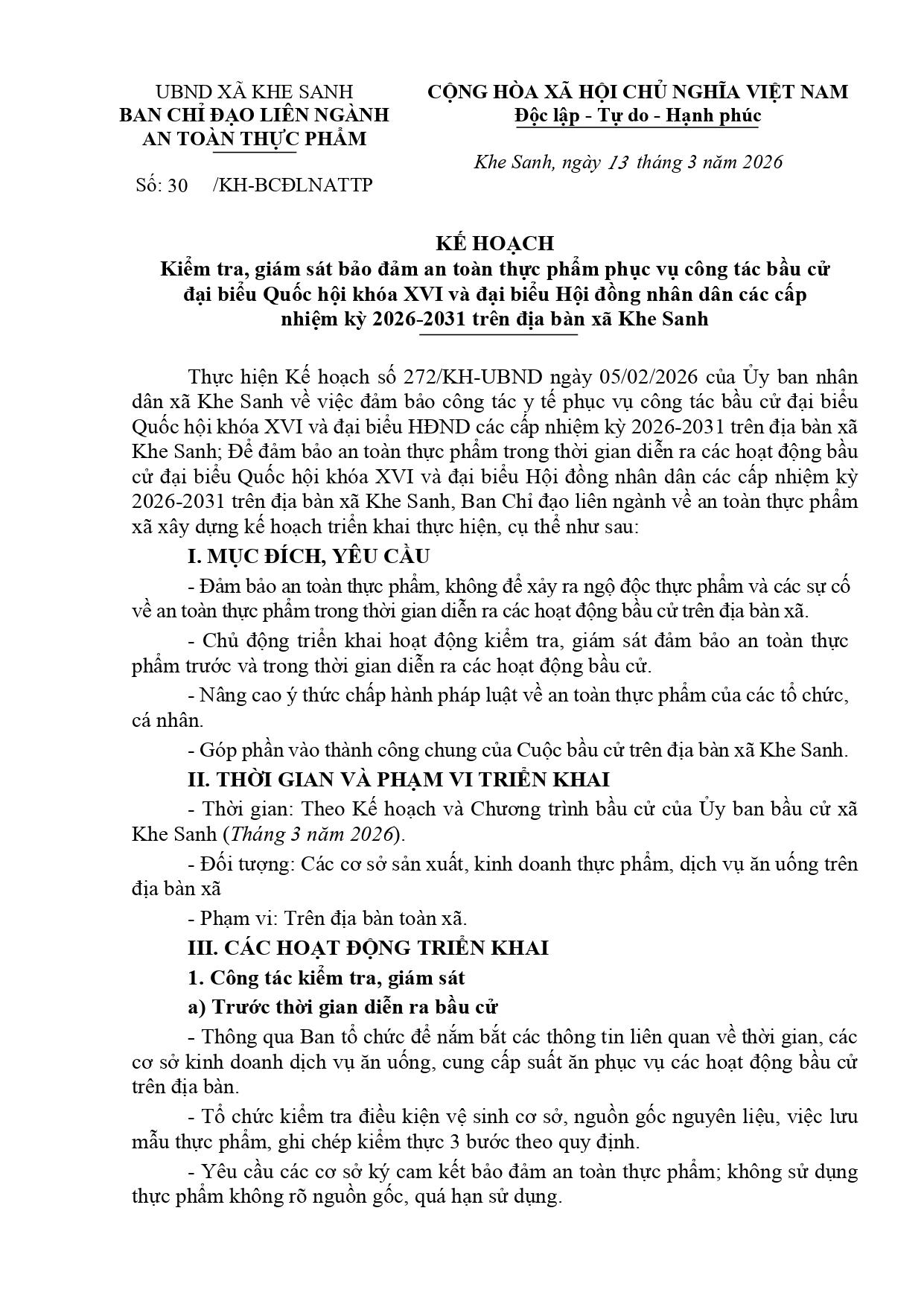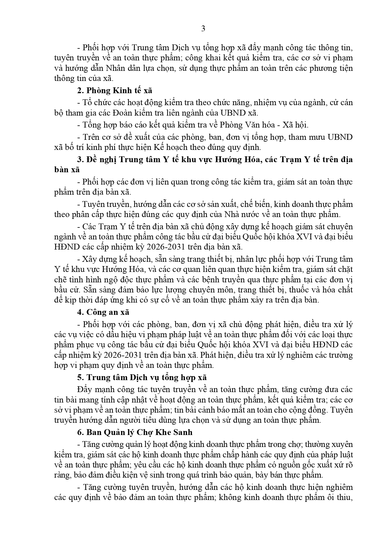 - Kế hoạch kiểm tra, giám sát việc chấp hành quy định của pháp luật về đăng ký hộ kinh doanh, hợp tác xã trên địa bàn xã Khe Sanh năm 2026 (11/03/2026)