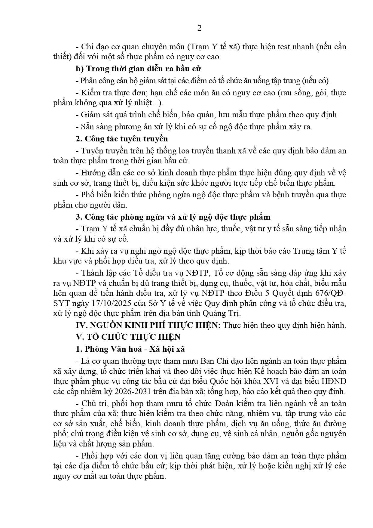 Kế hoạch kiểm tra, giám sát đảm bảo an toàn thực phẩm phục vụ công tác bầu cử