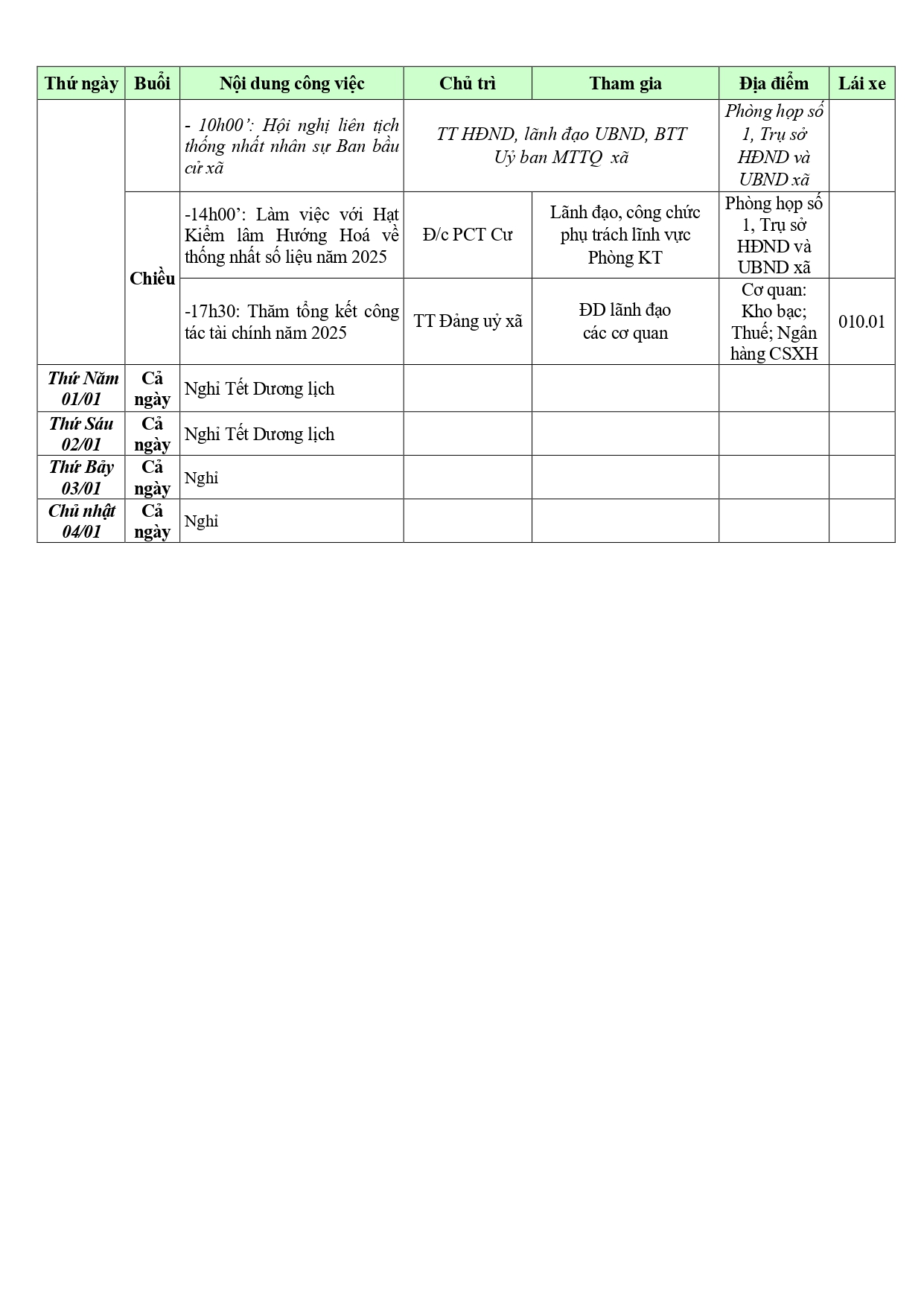 - LỊCH TUẦN 52 CỦA CƠ QUAN HĐND - UBND XÃ KHE SANH (25/12/2025)