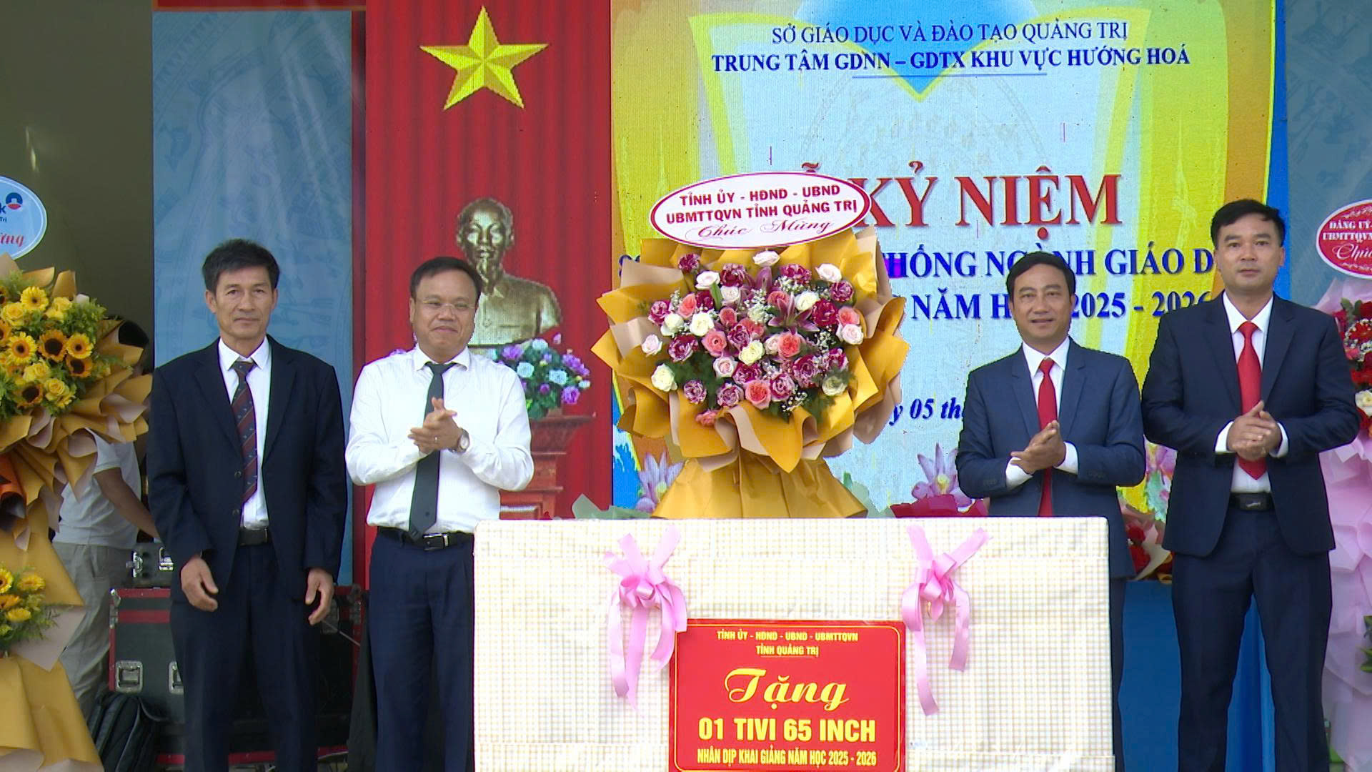 Nhân dịp lễ khai giảng năm học mới 2025 - 2026, thay mặt lãnh đạo tỉnh, đồng chí Lê Đức Tiến, Phó Chủ tịch UBND tỉnh đã tặng quà, hoa chúc mừng cho tập thể Ban giám hiệu, giáo viên và học viên Trung tâm Giáo dục nghề nghiệp - Giáo dục thường xuyên khu vực Hướng Hoá. Dịp này, UBND xã Khe Sanh cùng các đơn vị doanh nghiệp đã trao tặng quà cho các học viên có hoàn cảnh khó khăn, vươn lên trong học tập của trung tâm.