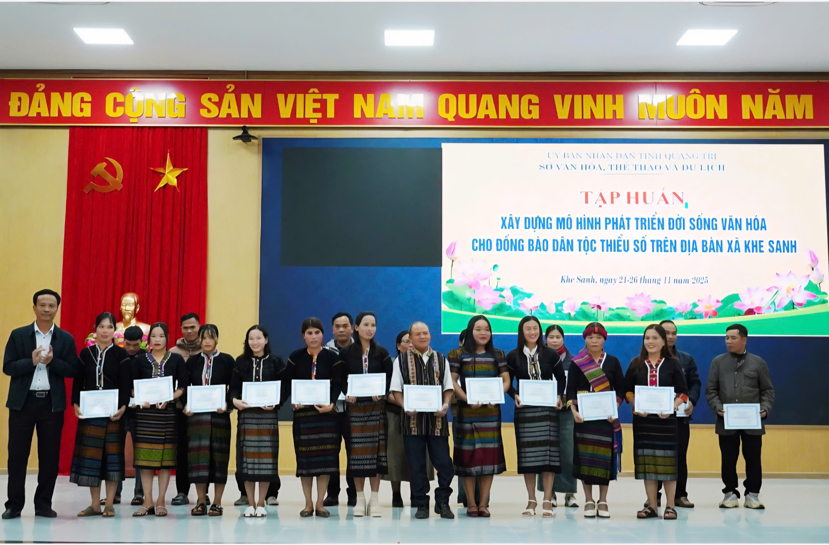 Trong các ngày từ 21 đến ngày 26/11, Sở Văn hóa, Thể thao và Du lịch phối hợp với UBND xã Khe Sanh tổ chức tập huấn Xây dựng mô hình phát triển đời sống văn hóa các dân tộc thiểu số tại xã Khe Sanh. Lớp tập huấn có sự tham gia của 80 học viên là những nghệ nhân, già làng, trưởng bản, người có uy tín và đồng bào dân tộc thiểu số trên địa bàn xã Khe Sanh.