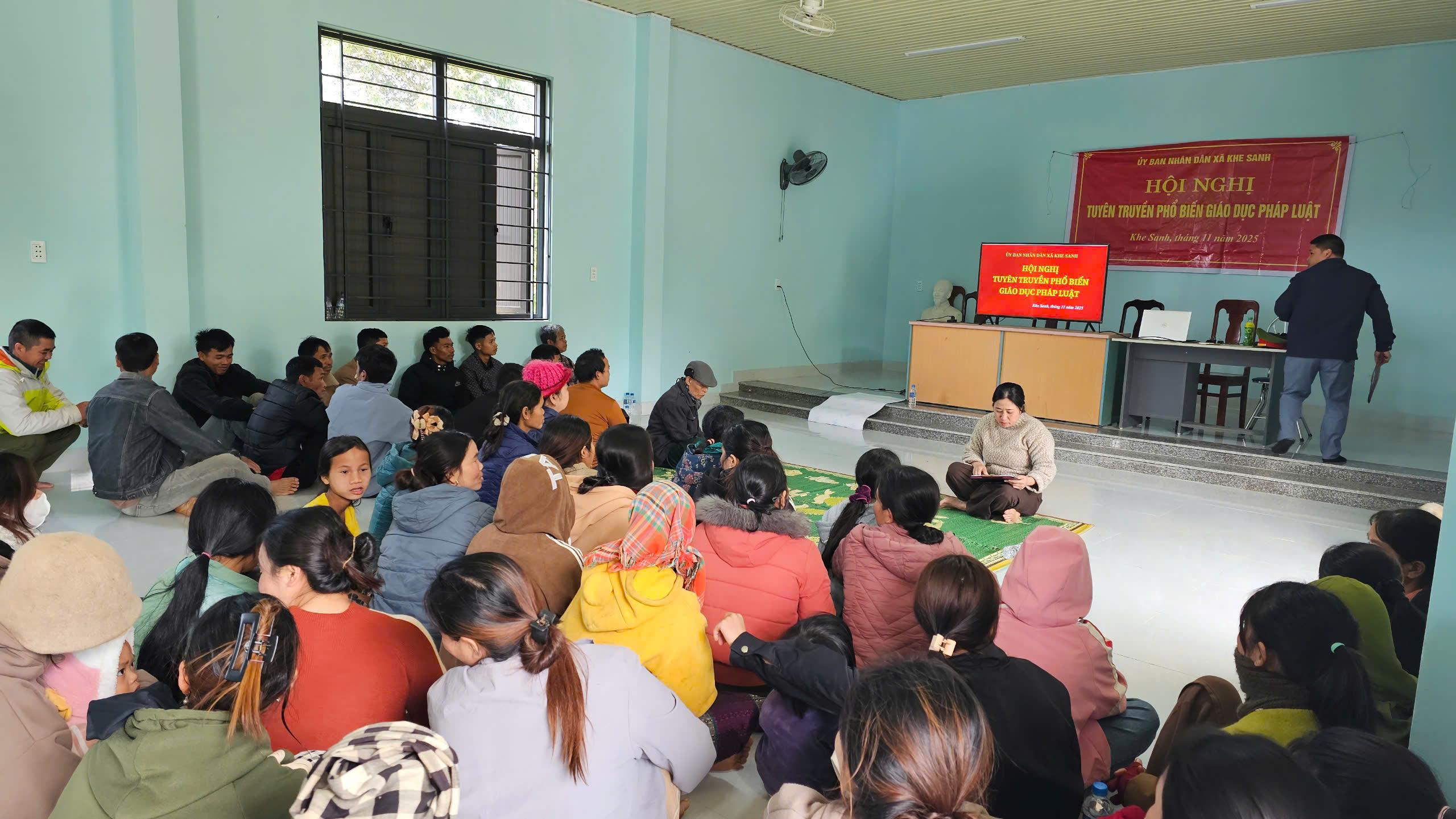 Trong các ngày từ 25 đến ngày 28 tháng 11, xã Khe Sanh tổ chức tuyên truyền, phổ biến, giáo dục pháp luật đợt 2 năm 2025 cho hơn 200 lượt người dân tại thôn 5, thôn Tà Đủ, Ván Ri và Xa Re. Dự và chỉ đạo tại các buổi tuyên truyền, có đồng chí Trần Thị Thương, Phó Chủ tịch UBND xã.