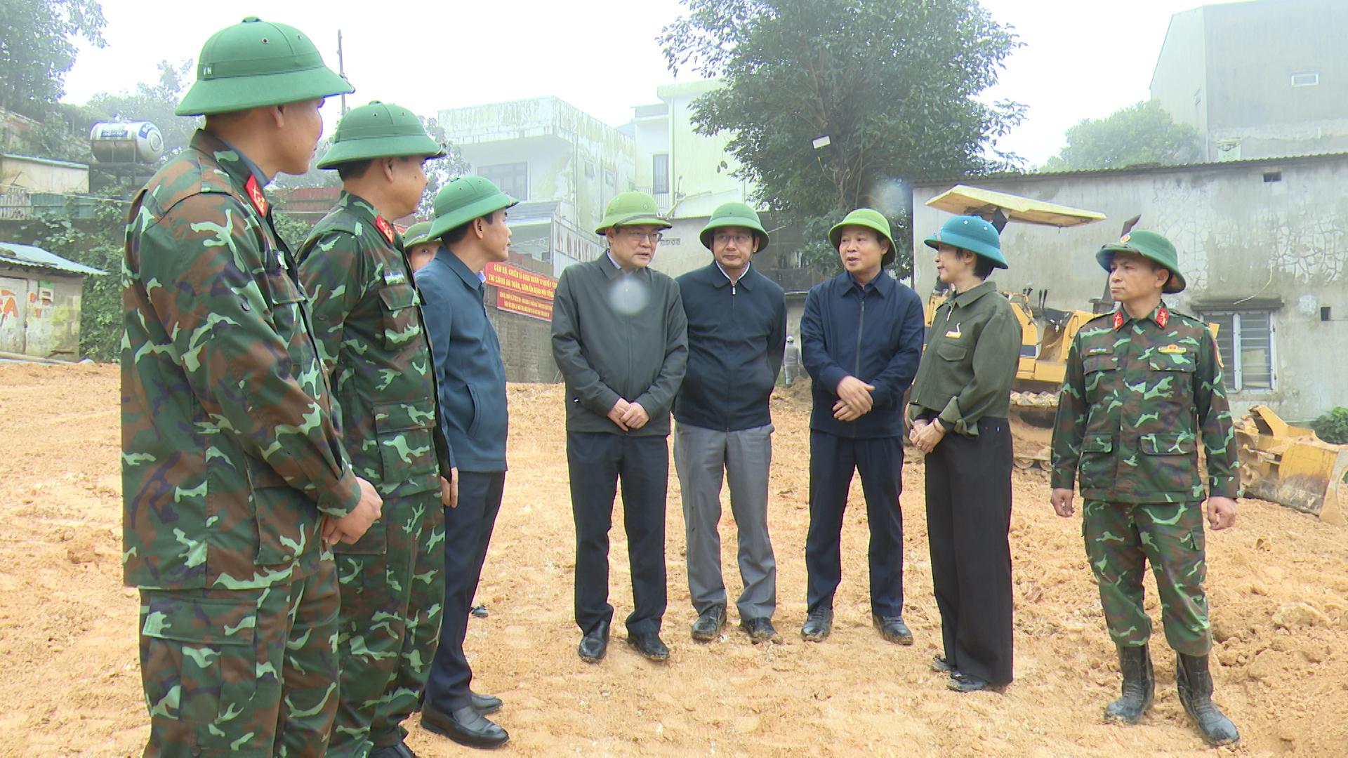 Đặc biệt, với tính chất đặc thù công trình có nhiều yếu tố phức tạp, cấp bách, đồng chí yêu cần cần bố trí một lãnh đạo Sở xây dựng cùng đơn vị tư vấn, giám sát phải có mặt tại hiện trường trong suốt thời gian thi công, để phối hợp chặt chẽ với chính quyền địa phương và các đơn vị liên quan, linh hoạt, kịp thời giải quyết các vấn đề phát sinh, trong đó phải luôn đặt vấn đề an toàn lao động lên hàng đầu. Đồng thời đồng chí Bí thư Tỉnh ủy đề nghị Bộ Tư lệnh Quân khu IV, Binh đoàn 12 hỗ trợ tối đa lực lượng, trang thiết bị và các điều kiện cần thiết để giúp địa phương thực hiện công tác thi công và sửa chữa lại nhà ở cho người dân bị ảnh hưởng, đảm bảo công trình hoàn thành trước ngày 31 tháng 12 năm 2025 theo tinh thần chỉ đạo của Thủ tướng Chính phủ.