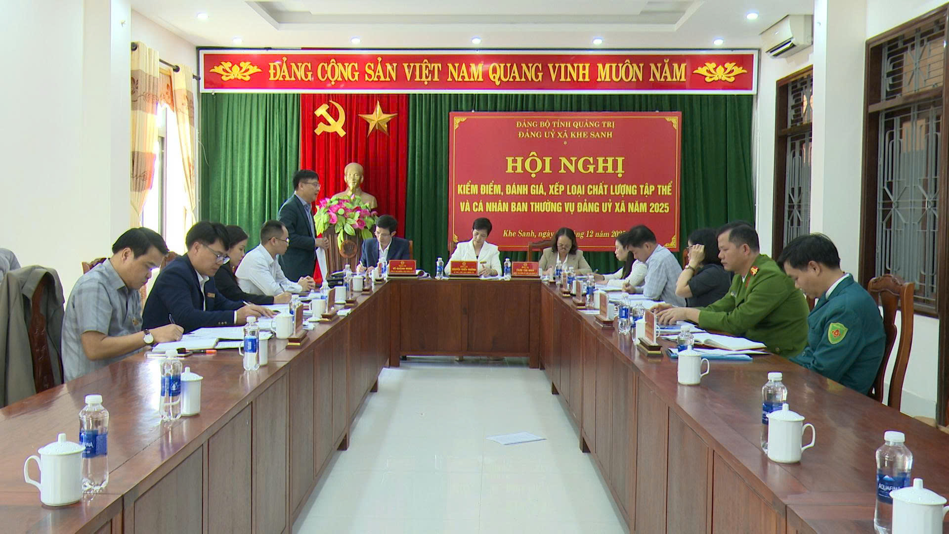 Ngày 23 tháng 12, Đảng ủy xã Khe Sanh tổ chức Hội nghị kiểm điểm, đánh giá, xếp loại chất lượng tập thể và cá nhân Ban Thường vụ Đảng ủy xã năm 2025. Dự và chỉ đạo có Thiếu tướng Nguyễn Thanh Liêm, UVBTV Tỉnh ủy, Giám đốc Công an tỉnh. Đồng chí Nguyễn Triều Thương, Bí thư Đảng ủy, Chủ tịch HĐND xã; Đồng chí Võ Khánh Minh, Phó Bí thư Thường trực Đảng ủy xã; Đồng chí Thái Thị Nga, Phó Bí thư Đảng ủy, Chủ tịch UBND xã đồng chủ trì Hội nghị.