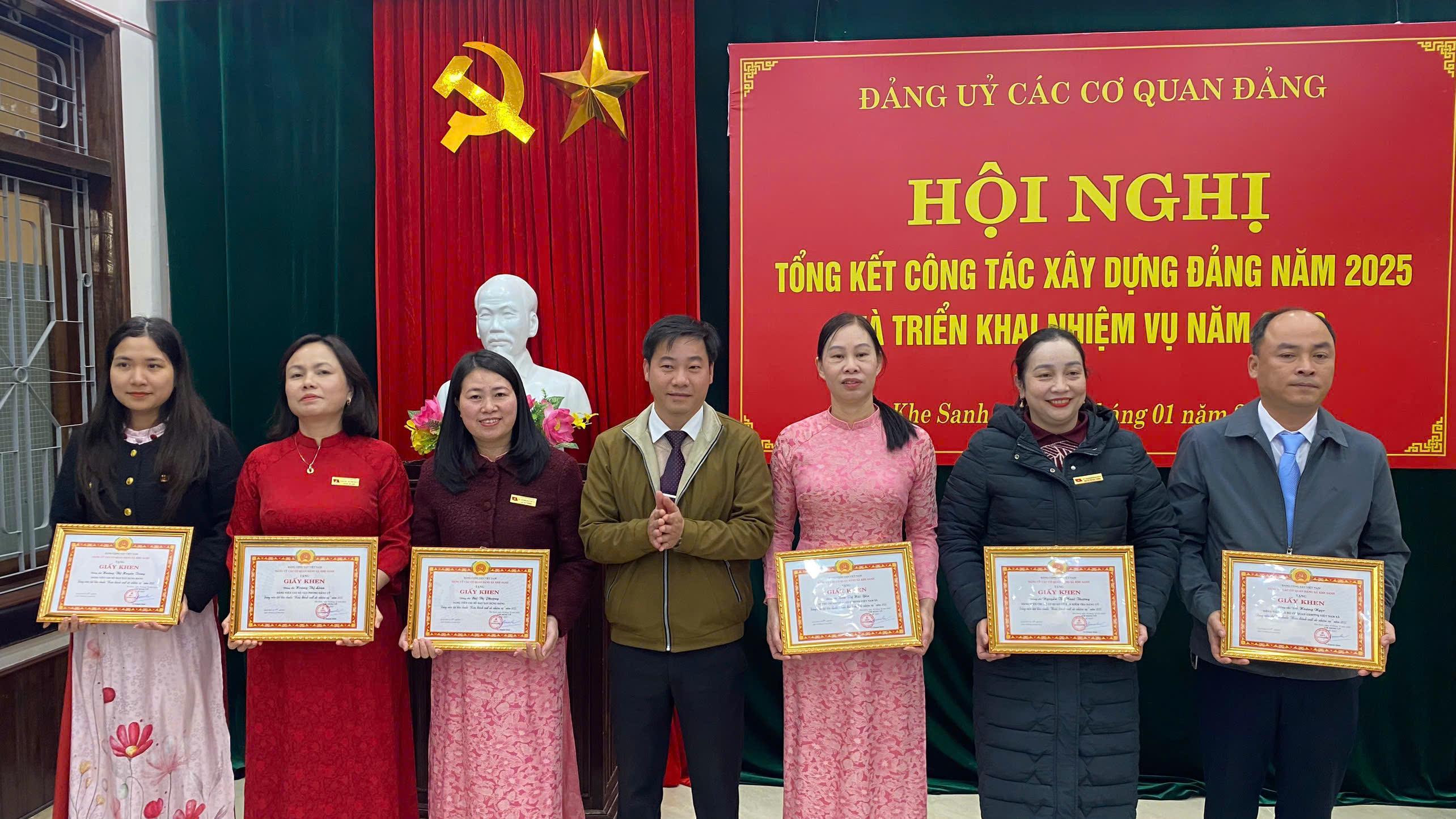 Tại hội nghị, Đảng ủy các cơ quan Đảng xã Khe Sanh đã trao tặng giấy khen cho 01 chi bộ và 06 cá nhân hoàn thành xuất sắc nhiệm vụ trong năm 2025.