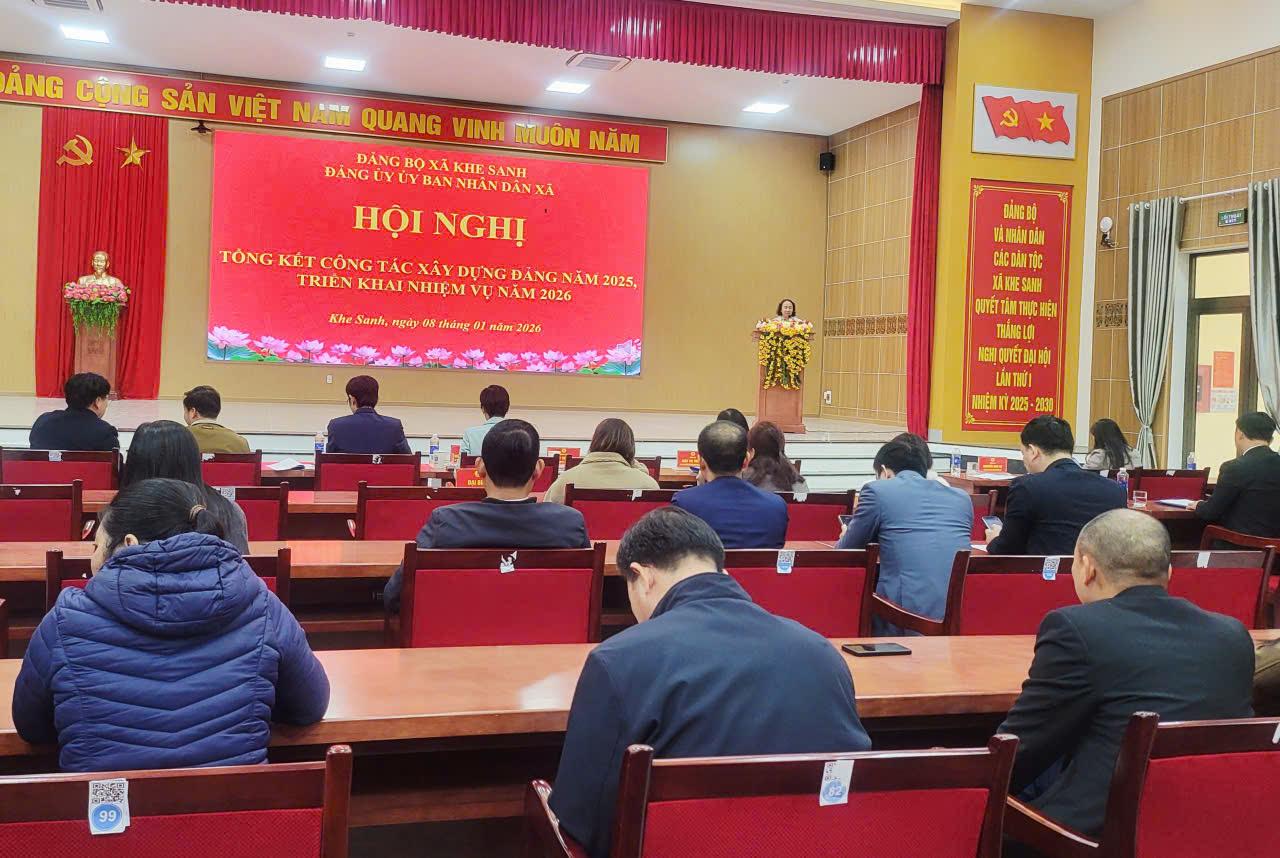 Ngày 8 tháng 1, Đảng ủy UBND xã Khe Sanh tổ chức Hội nghị tổng kết công tác xây dựng Đảng năm 2025, triển khai phương hướng nhiệm vụ năm 2026. Dự chỉ đạo Hội nghị có đồng chí Nguyễn Triều Thương, Bí thư Đảng ủy, Chủ tịch HĐND xã; Đồng chí Võ Khánh Minh, Phó Bí thư Thường trực Đảng ủy xã. Đồng chí Thái Thị Nga, Phó Bí thư Đảng ủy, Chủ tịch UBND xã, Bí thư Đảng ủy UBND xã chủ trì Hội nghị. Tham dự có các đồng chí trong BTV, Thường trực HĐND, UBND, UBMTTQ Việt Nam xã.