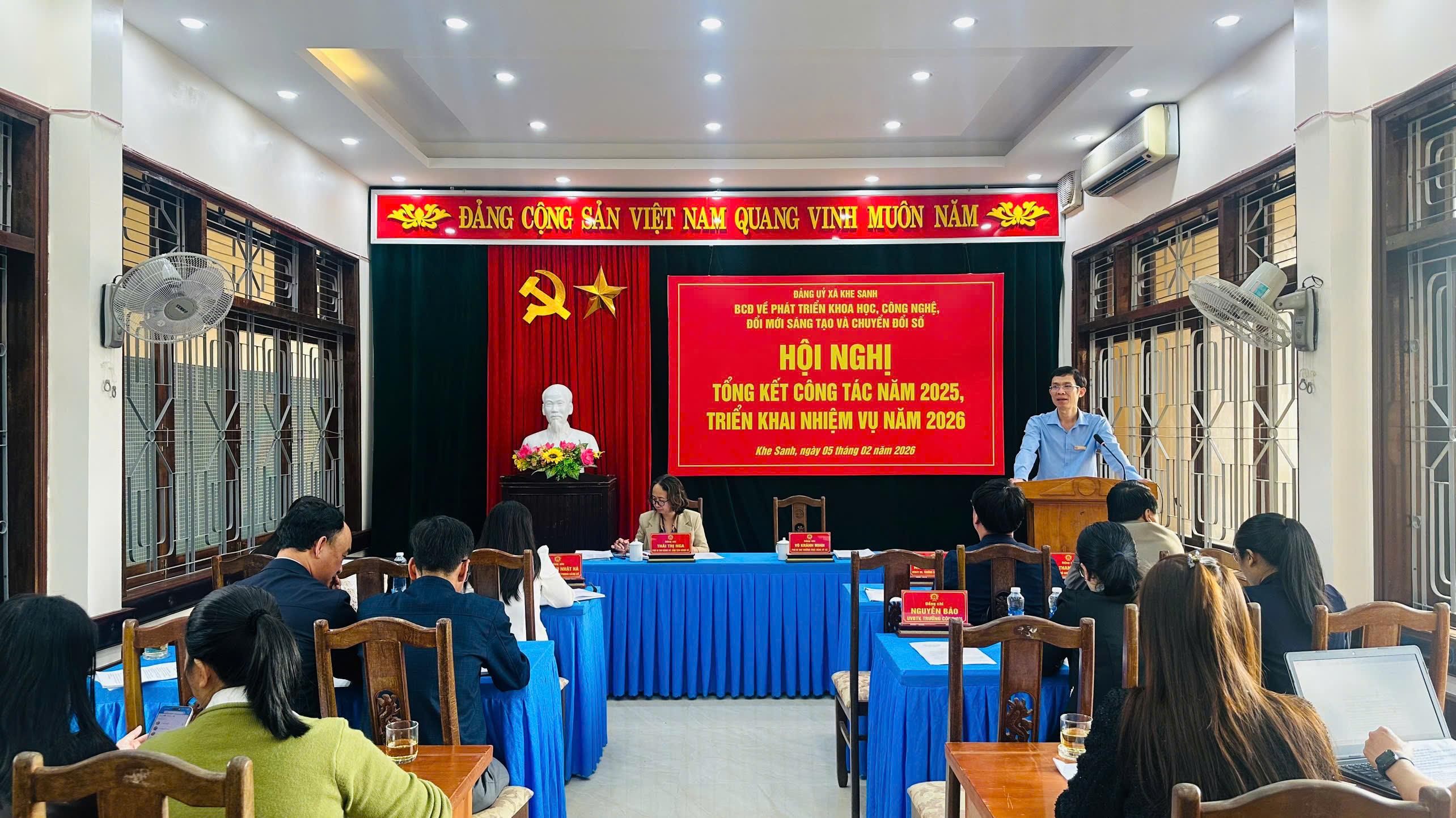 Ngày 05/02/2026, Ban chỉ đạo về phát triển khoa học công nghệ, đổi mới sáng tạo và chuyển đổi số xã Khe Sanh tổ chức Hội nghị tổng kết công tác năm 2025, triển khai nhiệm vụ năm 2026. Dự có đồng chí Võ Khánh Minh, Phó Bí thư Thường trực Đảng uỷ xã; đồng chí Thái Thị Nga, Phó Bí thư Đảng uỷ, Chủ tịch UBND xã.